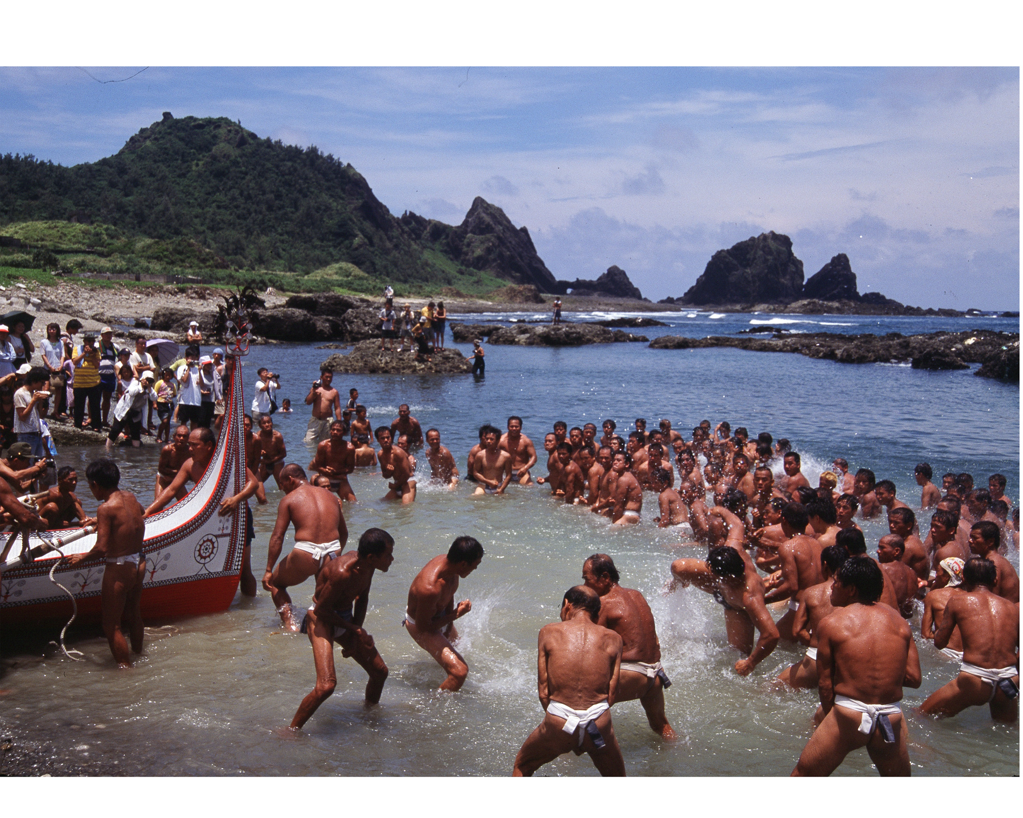 【圖3】蘭嶼大船下水祭儀,正在部落港澳舉行大船下海試行的景況。(楊政賢攝影,蘭嶼東清部落,2008年)