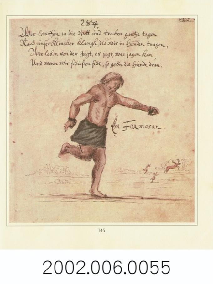 目前所知最早的番俗圖像應是16世紀西班牙文獻Boxer Codex裡的〈雞籠人(Cheylam)〉與〈淡水人(Tamchuy)〉圖像,雞籠的男子持鏢槍,女子手提一尾魚;淡水的男子持弓箭,女子手捧人的頭蓋骨。西班牙人表達雞籠人捕魚,可以交易商品,至於淡水人則是有獵首習俗。荷蘭東印度公司職員Caspar Schmalkalden(1616-1673)於17世紀中葉在台工作2年,在他寫作的《東西印度驚奇旅行記》(Die wundersamen reisen des CASPAR SCHMALKALDEN nach West- und Ostindien 1642 – 1652,1659)裡描繪一名奔跑中的台灣原住民,短髮披散,上身赤裸,戴手環,下半身用深色布圍住,赤腳,作奔跑狀。據其記載,是在慶典中賽跑,手上的金屬環在跑步時發出聲響。(如圖1)
