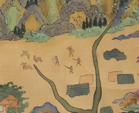 【圖2】捕鹿。(資料來源:〈康熙臺灣輿圖〉,國立臺灣博物館典藏(CC BY-NC 3.0 TW)@開放博物館)