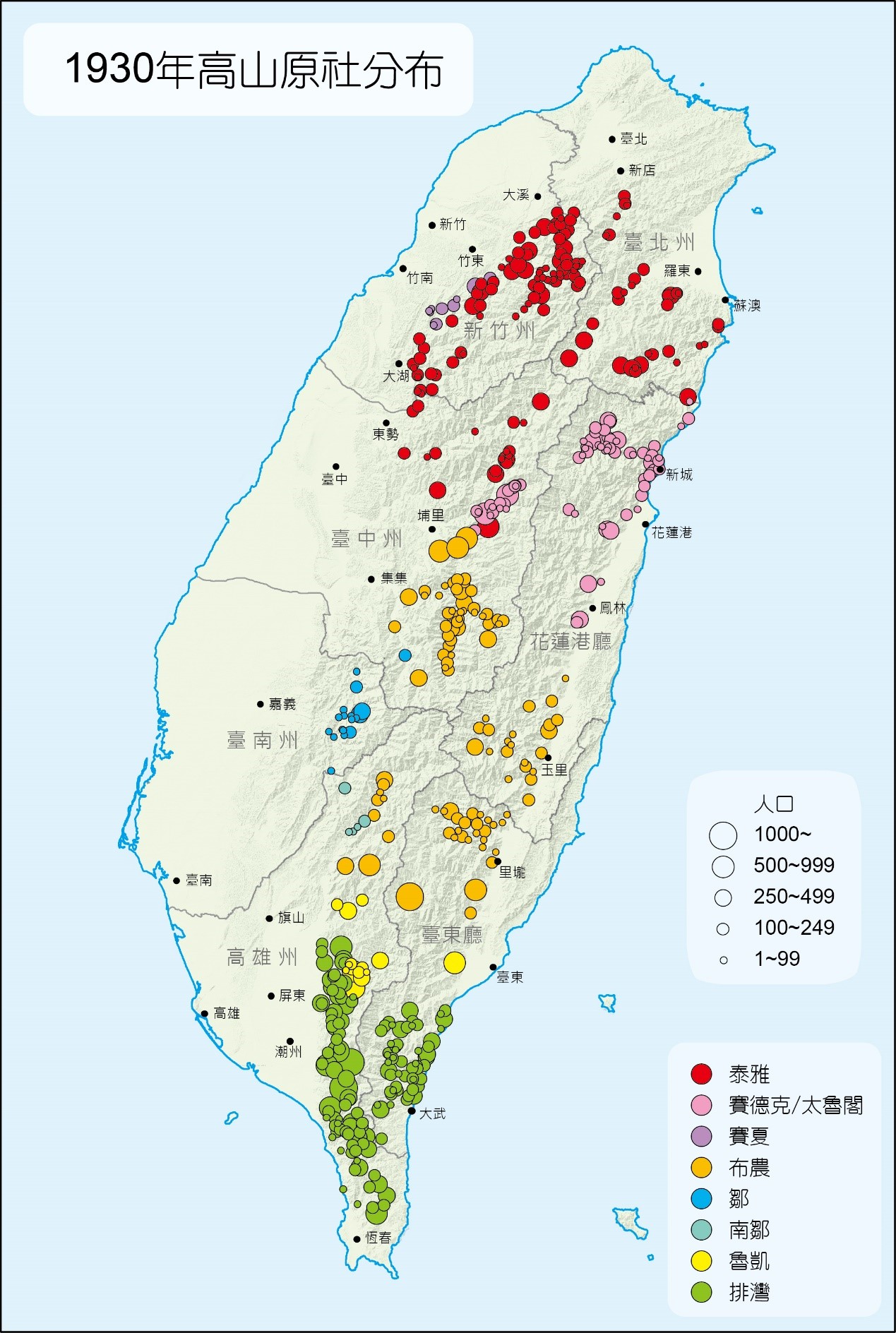 這段期間遭到遷移的人口,以太魯閣族與布農族最多(比較圖1、圖2)。今日花蓮縣秀林鄉、卓溪鄉,台東縣海端鄉、延平鄉,以及南投縣信義鄉的山區,幾乎全面淨空。原居於上述山區的原住民被移到中央山脈山腳與陳有蘭溪沿線,建立許多大型聚落。如此大規模遷移也導致族群分布的重疊與犬牙交錯。例如,部分太魯閣族或賽德克族人被嵌入布農族領域裡,形成布農族、太魯閣族、布農族、太魯閣族與賽德克族、布農族交錯排列的情形(依序為花蓮縣萬榮鄉馬遠、紅葉、卓溪鄉崙山、立山、太平等村)。此外,布農族人大舉移入原屬鄒族的陳有蘭溪流域與原屬卡那卡那富族的楠梓仙溪流域(今高雄市那瑪夏區),並在人數上反客為主。