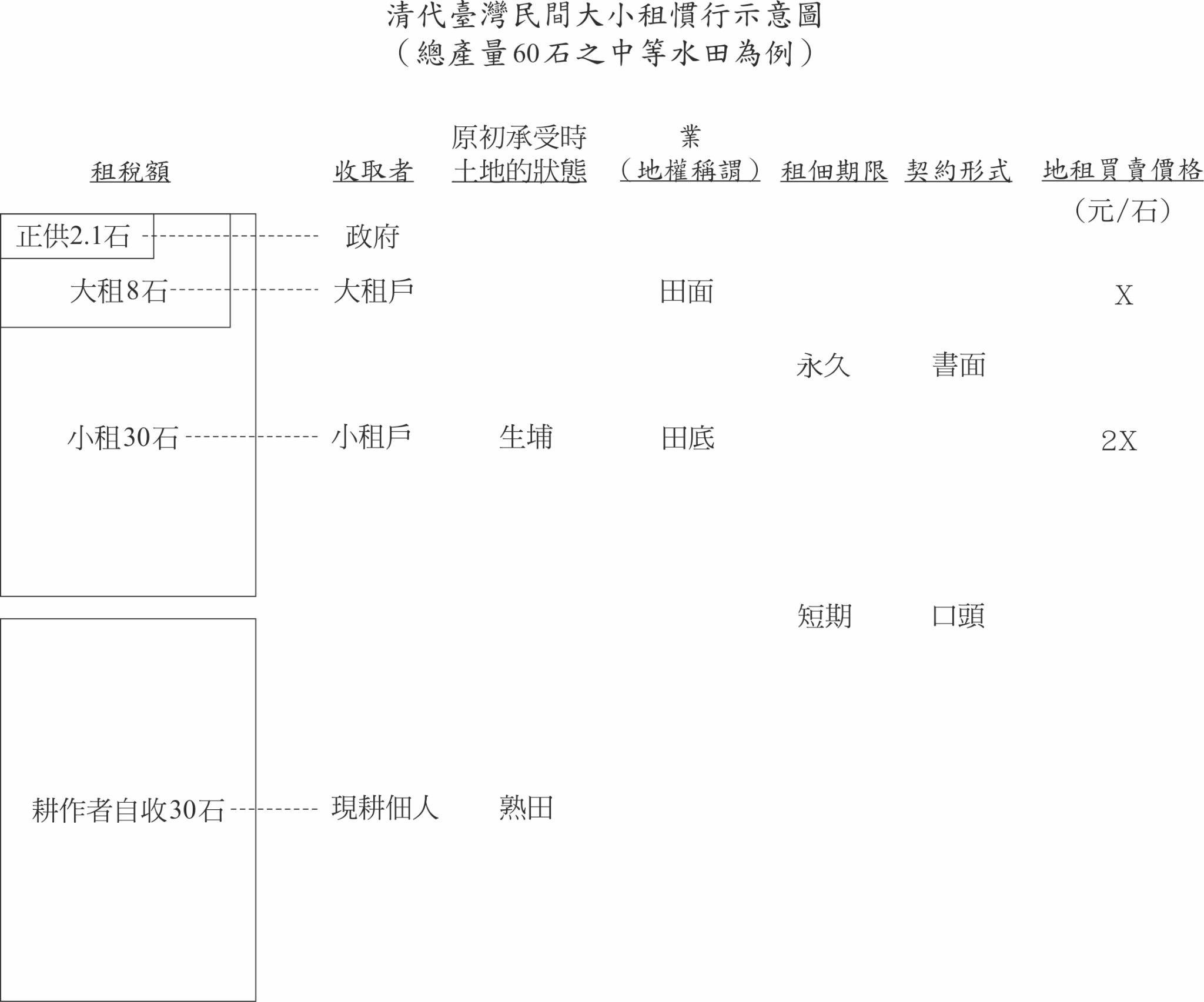 【圖1】清代台灣民間大小租慣行示意圖。(柯志明提供)
