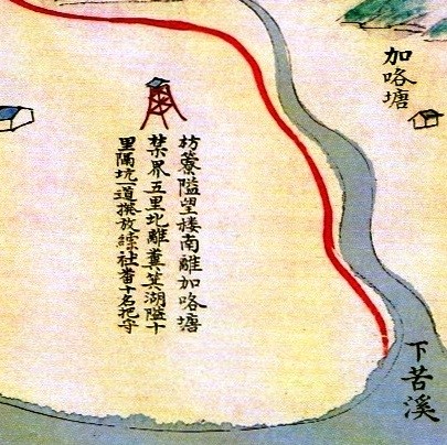 「隘」字的原義是狹窄、狹小,此字用在地形、地勢的描述時,指涉狹窄處所,從軍事的角度看,有險要之意,如隘口、要隘等用語。當官方固定派人在隘口衝要之處駐守,這些人為了生活與工作方便,建立寮舍住居,稱作「隘寮」;為了便於哨望,又須建築高台,當時稱為「望樓」,此類關隘多稱為某某隘,如屏東的「糞箕湖隘」、「巴陽庄隘」等(如圖1)。每隘人數約一、二十名至數十名,每人每日口糧兩升。