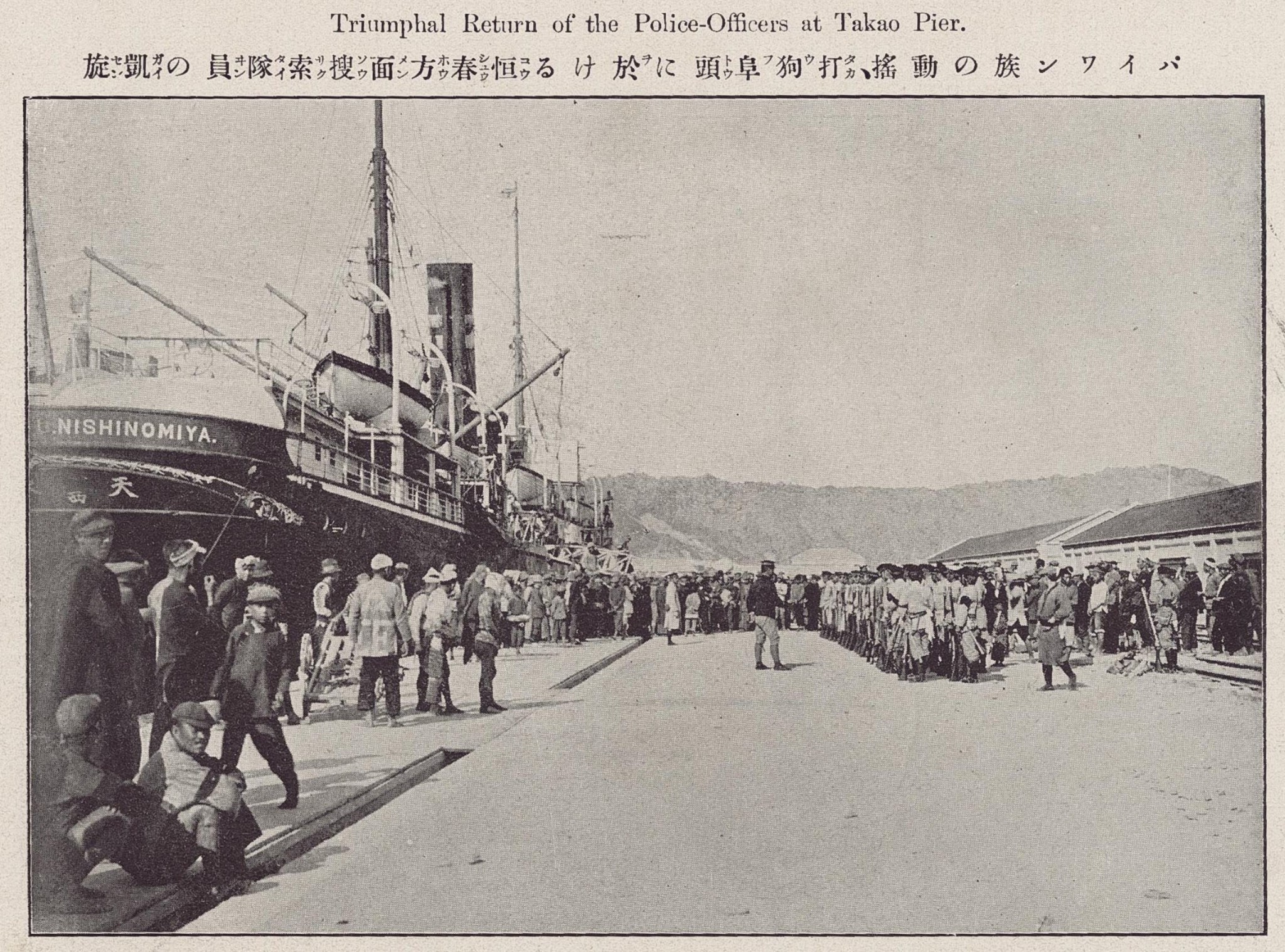 【圖2】打狗碼頭迎接恒春方面日本搜索隊員。(資料來源:《臺灣寫真帖》第1卷第7期(1915年),國立臺灣歷史博物館典藏(PDM))