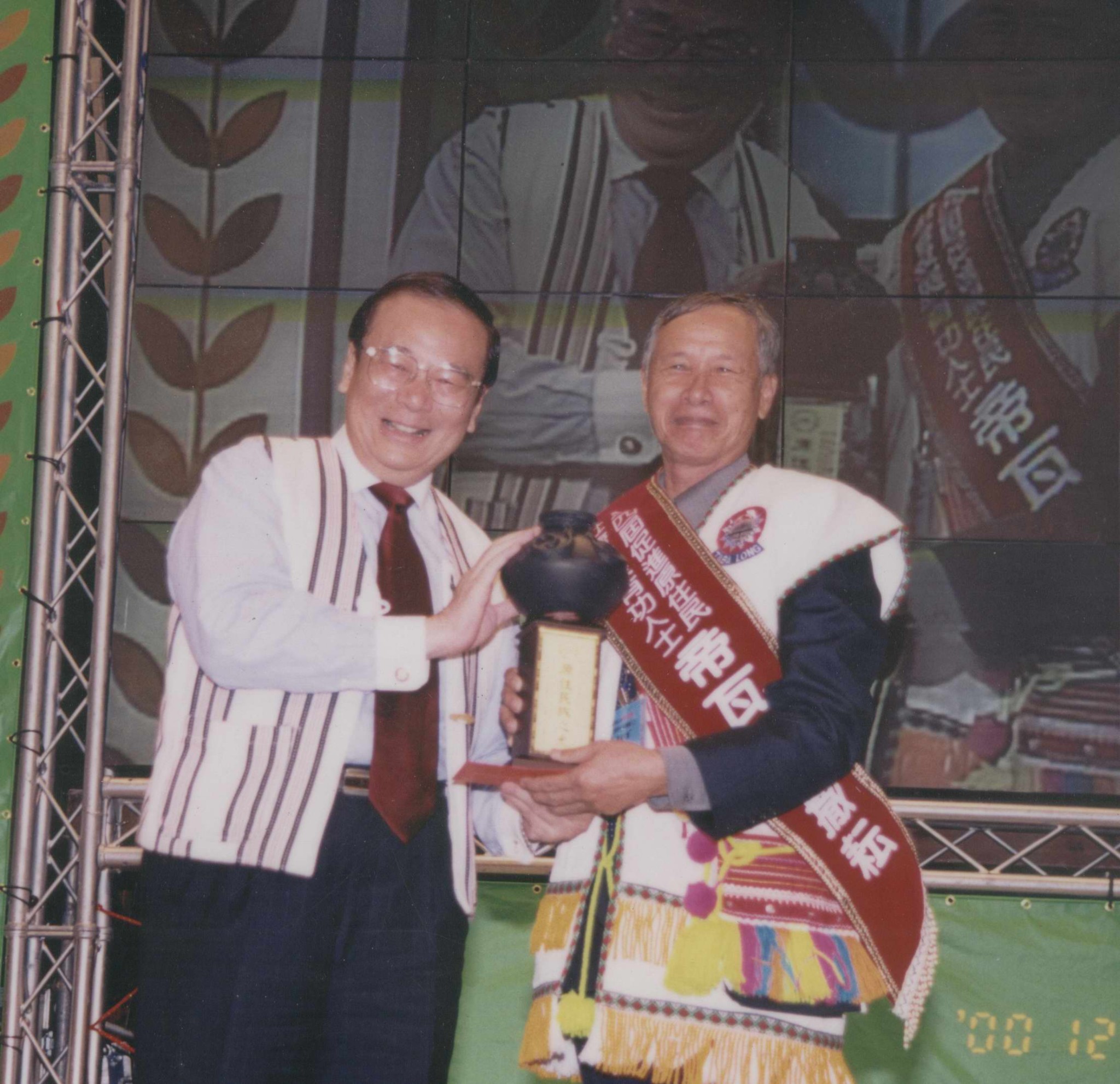 【圖8】2000年12月由行政院長張俊雄(左一)頒發第四屆促進原住民社會發展有功人士獎。(督固‧撒耘提供)