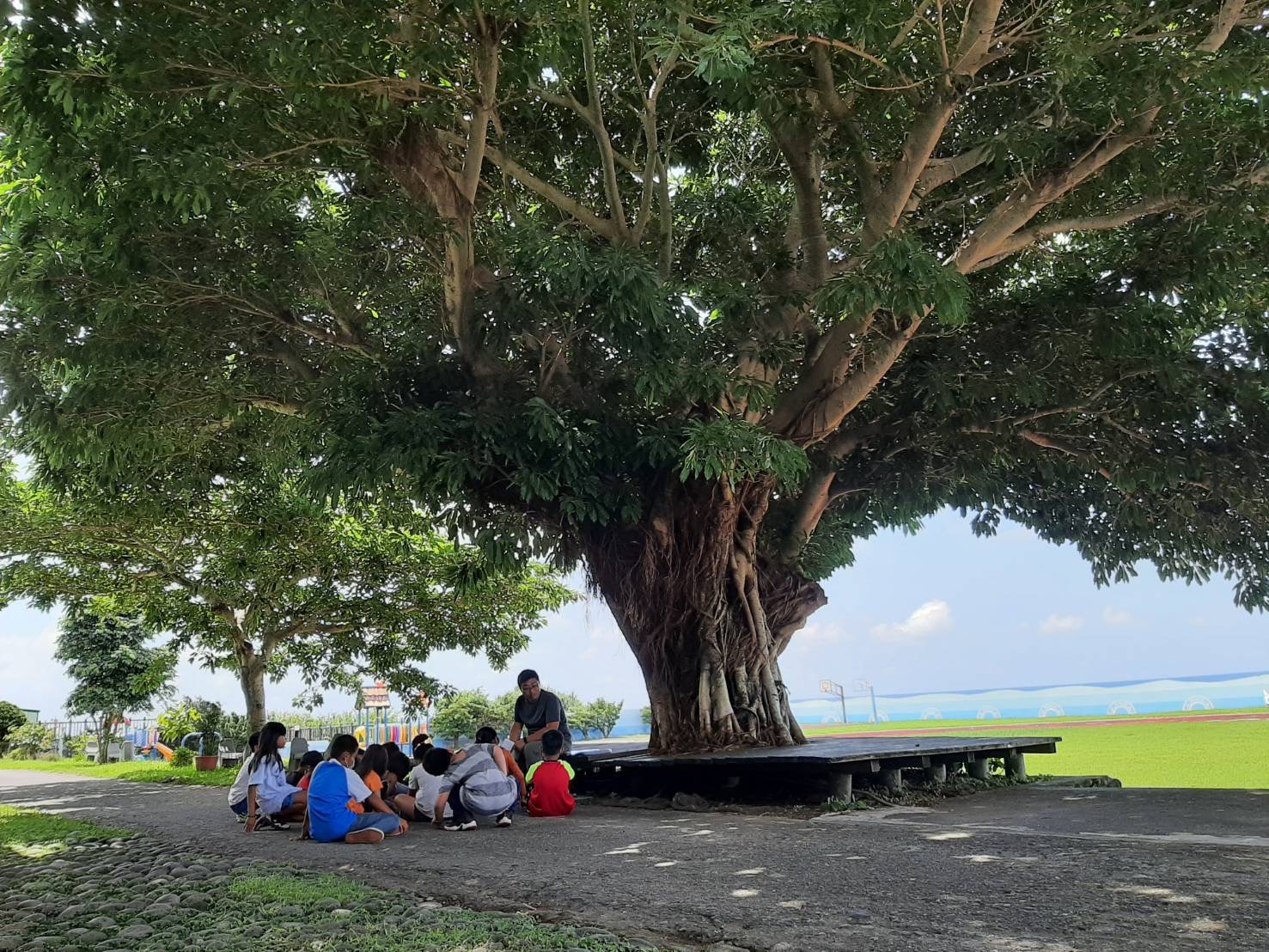 【圖3】在樹齡60餘年的大白榕樹下上課。(張逸萍提供)