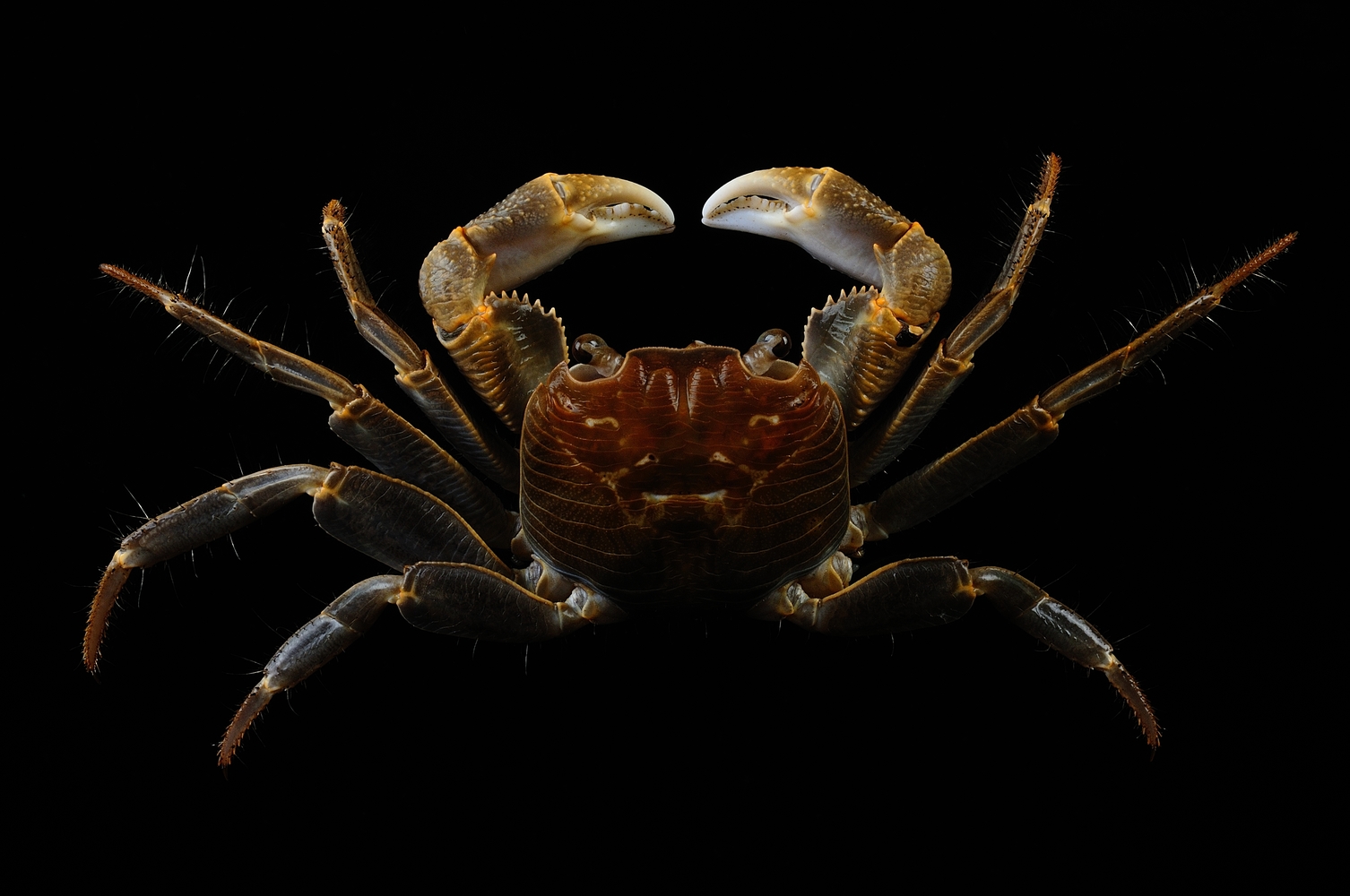 甲身扁平呈方形,甲面光滑長有斜向隆線。含眼窩外齒共2齒。第2、3步足基部間有毛囊,有吸收補充水分的功能。螯足左右不等大,掌節外緣有顆粒突起。整體呈深土黃色,螯色由基部向指尖漸鮮黃而淡白。