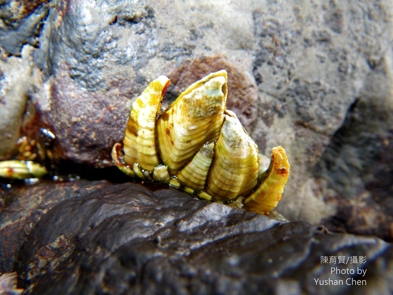有柄藤壺,柄部圓筒形,密生細小的白色鱗片,體殼由8片三角形、大小不一的殼板所組成,看起來像烏龜腳爪。身體分為頭部和柄部,頭部側扁,由8個殼板形成殼室,基部有一排小的側板輪生。殼板呈白色,外面包覆一層牢固的黃褐色外皮。