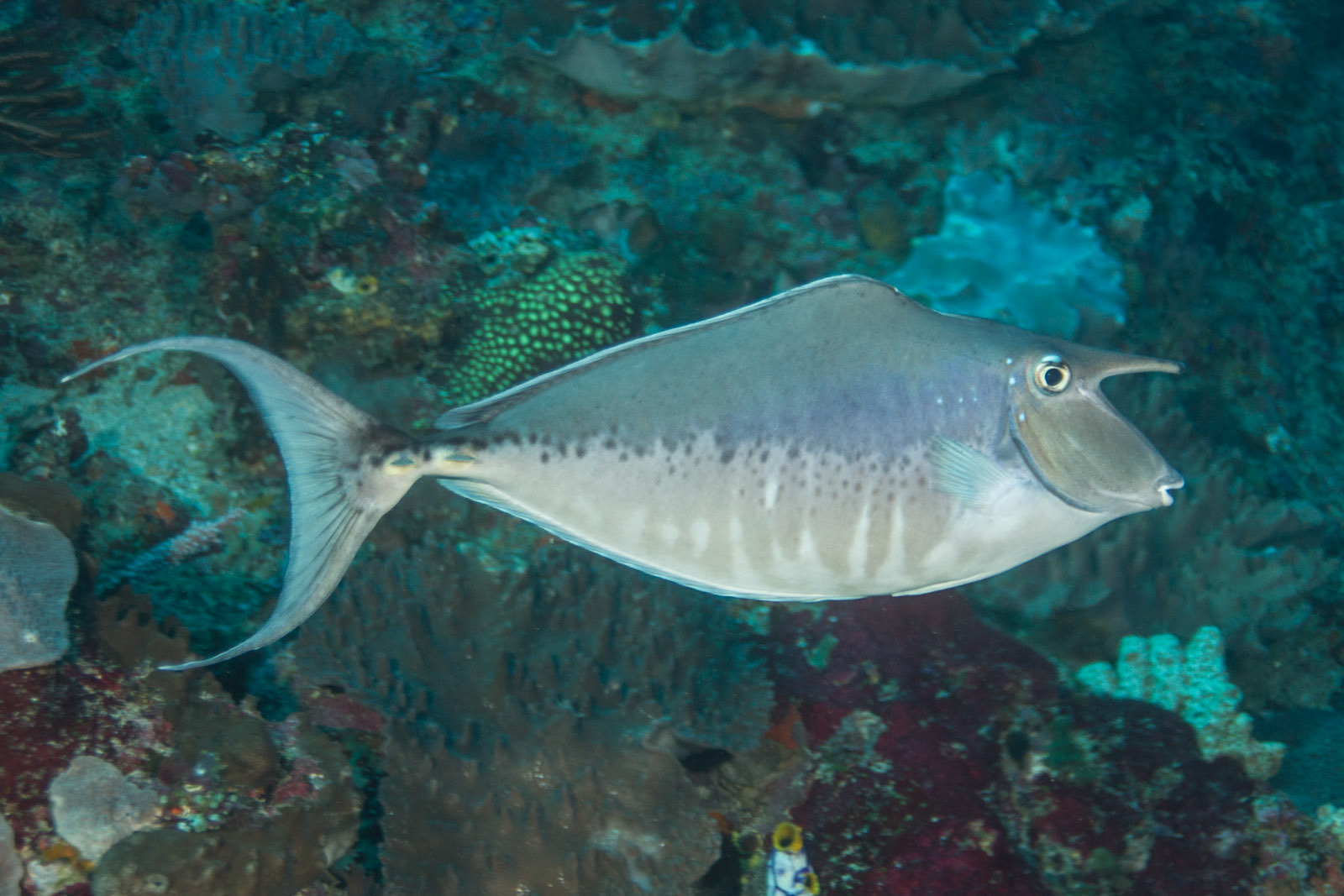 最大體長為90公分,體呈長橢圓形而側扁。雄魚在眼前方之額部逐漸突出而形成長而鈍圓之角狀突起,角狀突起與吻部呈45度角,雌魚則無。齒稍側扁且尖銳,尾鰭截平。體呈橄欖色至暗褐色,鰓膜白色,體側無任何斑紋。
