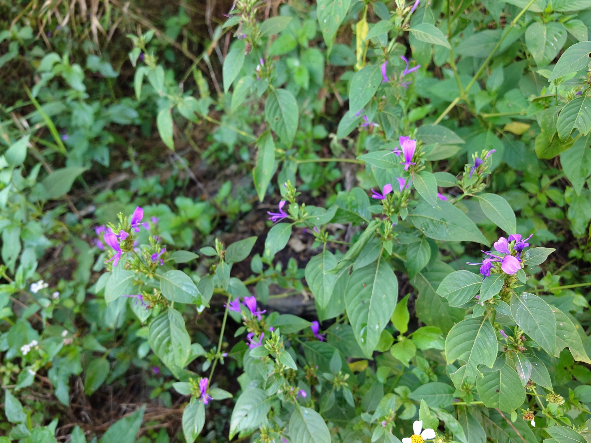 小灌木,高可達1.5公尺。莖草質,稜柱狀,被短柔毛,有下凹的縱直脊線節稍膨大。葉對生,膜質,卵形至卵狀披針形,全緣,上面微皺縮,長8-15公分,寬3-6公分。穗狀花序稍疏散,頂生或生於上部葉腋內,花序長約5公分,花冠紫色,多數,花冠唇形,2裂。萌果長橢圓形,長約1公分,種子4枚或更少。