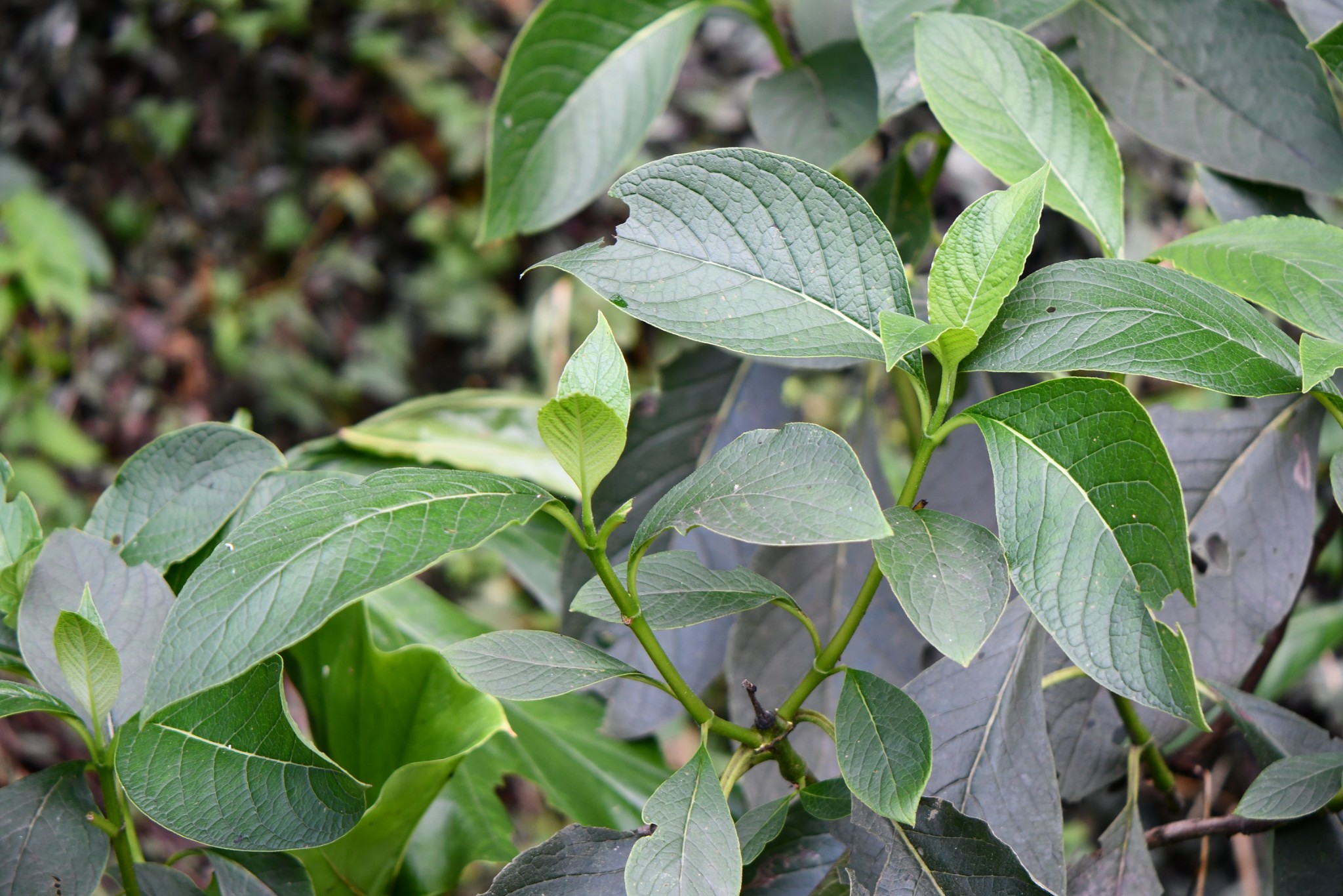 多年生草本,株高150-300公分。小枝具粗毛,成熟漸無毛。單葉對生,具柄,倒披針形至橢圓形,全緣,長約10-30公分,寬6-13公分,先端漸尖,葉表粗糙,葉背色淡且有短毛。頂生圓錐花序,花冠漏斗狀,花白或粉紫色,開花時反捲曲,花軸粗毛密布,苞片披針形,鐘形卵狀5裂,綠色花萼。卵形堅果。