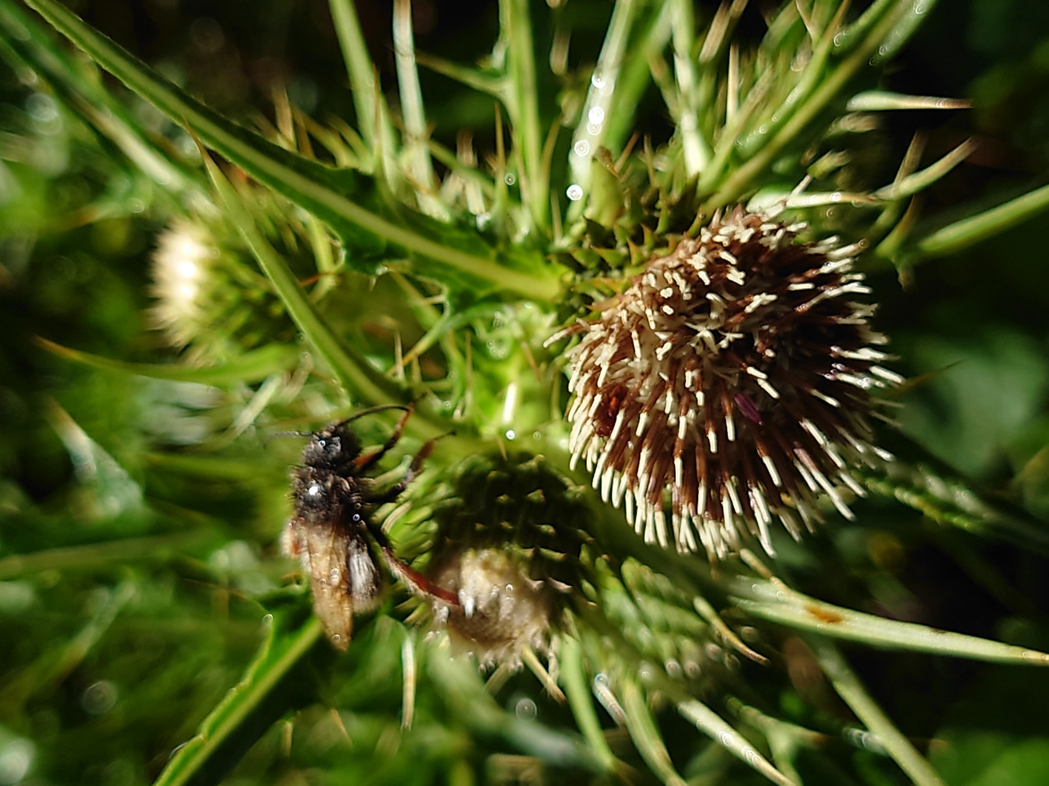 多年生草本,株高30-100公分。莖直立,被毛。基生葉叢生,披針形,先端漸尖,羽狀裂葉,裂片6-9枚,形成披針形銳刺,葉緣具長刺。頂生頭狀花序,2-3朵聚生,具短梗,總苞鐘狀,苞片外圍呈現狀披針形,內層苞片和花冠呈紫色至黃白色。