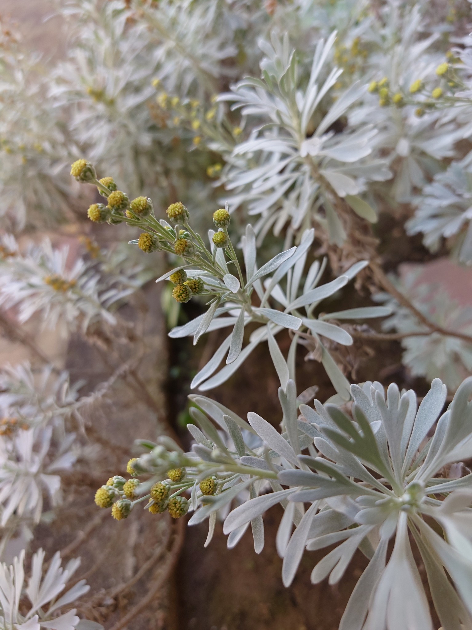 多年生常綠亞灌木,株高30-70公分。全株被灰色絨毛,具香氣。莖直立,多分枝。單葉互生,狹倒披針形至窄匙狀,長3-5公分,寬0.5-2公分,先端2-3裂鈍裂,基部狹,全緣,柔軟革質 。頂生頭狀花序,總苞半圓形,被毛,外圍兩列是雌花,中央為兩性花,皆管狀。長橢圓形瘦果,5稜,頂端具冠毛,花果期冬、春兩季。