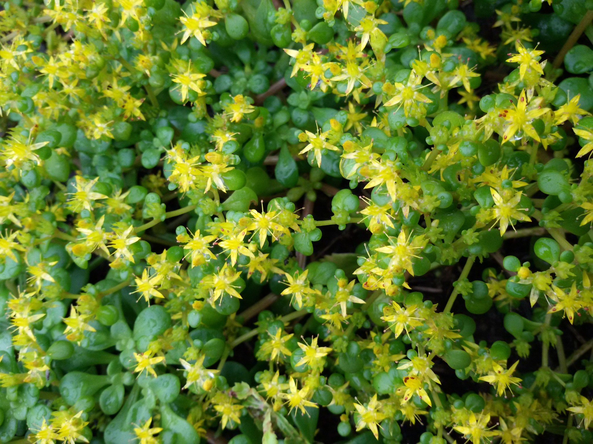 一年生肉質草本,莖直立,多分枝。葉互生,無柄,湯匙形或倒卵形,葉兩面淺綠色,肉質,長0.9-1.5公分,寬0.6-1.2公分,光滑。聚繖花序,腋生,花冠金黃色,徑約1公分,花萼、花瓣及心皮皆5枚,雄蕊10枚,花絲細長,花葯黃色,橢圓形,子房離生,5枚。蓇葖果,成熟時黃綠色。種子細小,多數,長橢圓形,棕褐色,長約0.4公釐。
