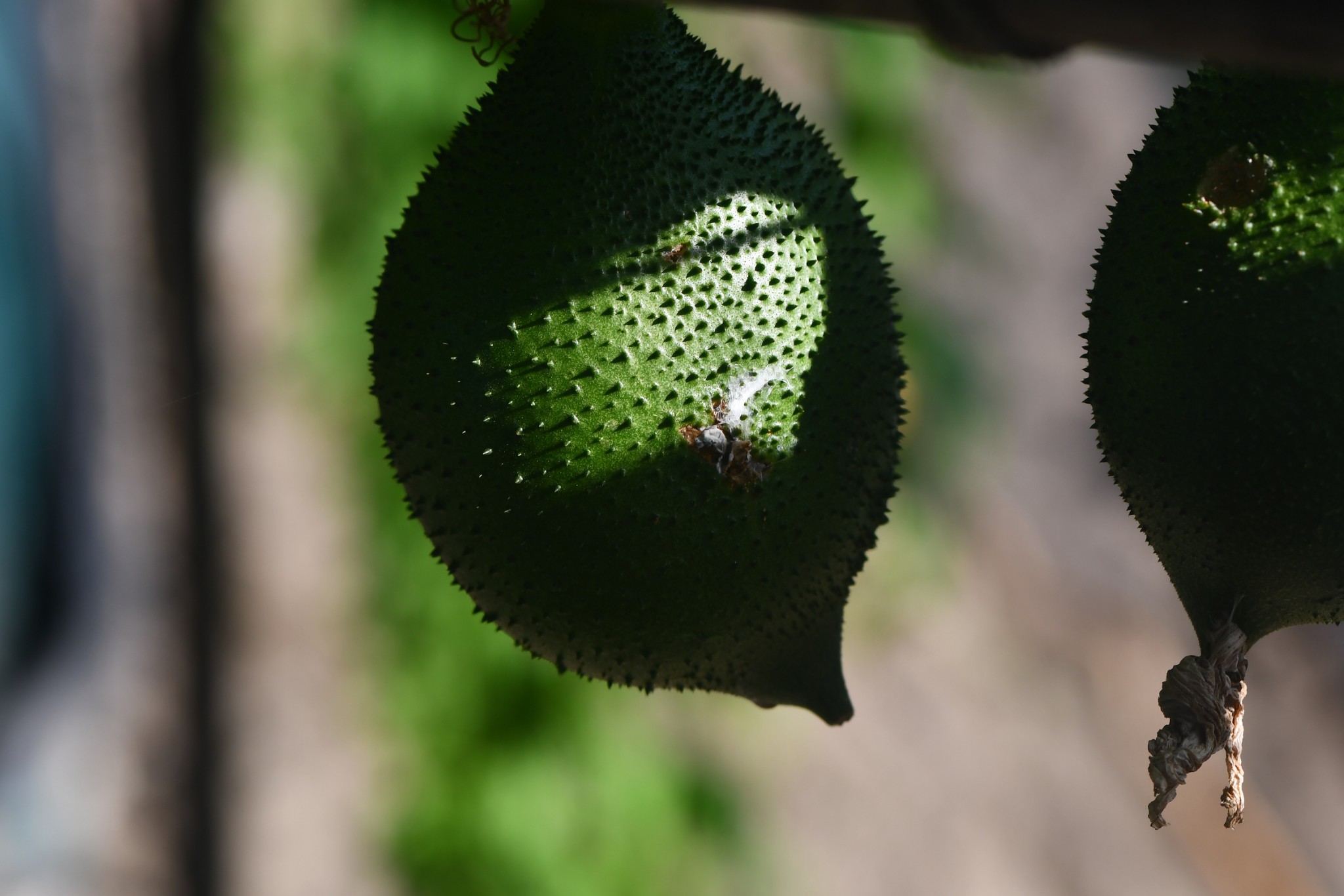 多年生藤本,株高5-9公尺。塊根粗大,圓柱形,淺棕色。莖有稜線,側邊有捲鬚,攀附他物。單葉互生,三角形廣卵心形,長10-20公分,寬10-20公分,具3-5深裂,紙質。單生,雌雄異株或同株,花冠鐘狀,淡黃色,中間漸深,成熟後花冠會向外捲曲,花萼具暗紫色條紋,5裂,花期6-8月。瓜果橢圓形至卵狀,長11-15公分,徑9公分,果梗9公分,成熟由綠轉橘,具突刺,成熟漸軟。