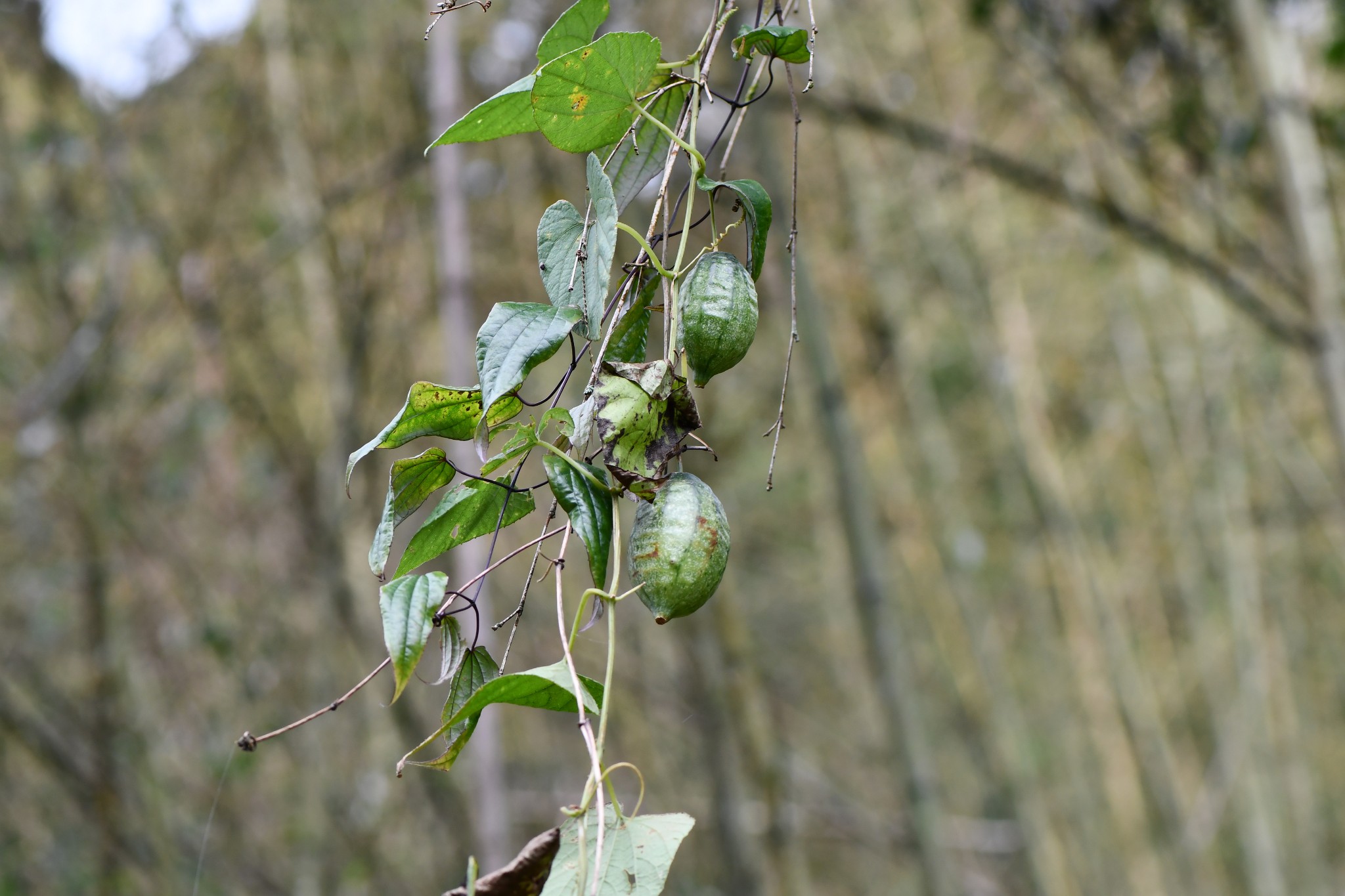 多年生宿根性纏繞草本,莖粗糙,卷鬚3叉。葉互生,柄長2-3公分,被毛,葉長橢圓形至心形,長8-15公分,寬5-8公分,先端銳尖形,葉基心形,粗牙緣,上面粗糙,背面被毛,紙質。雌雄異株,雄花總狀花序,腋生,苞片葉狀,倒卵形,花萼裂片線形,花冠裂片倒卵形,子房下位。瓜果長圓形,種子多數。