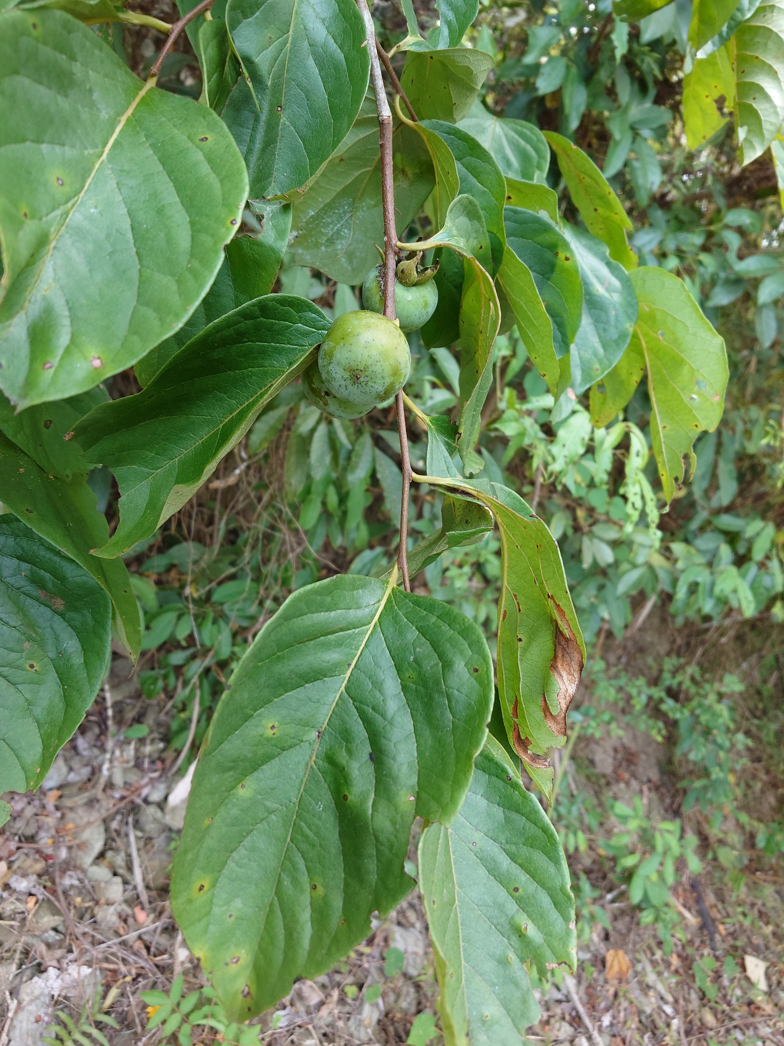 落葉大型喬木,可高10公尺。幼枝被褐色絨毛。單葉互生,廣橢圓形至倒卵形,長5-18公分,寬3-6公分,先端尖基部廣楔形,全緣,葉背具柔毛。雌雄異株,腋生聚繖花序,花萼大,4裂,黃白色花冠,深4裂反向捲曲,雌花子房上位,花期5-6月。扁圓形至圓形漿果,徑4-8公分,成熟轉橘紅色,花萼宿存,果期9-11月。