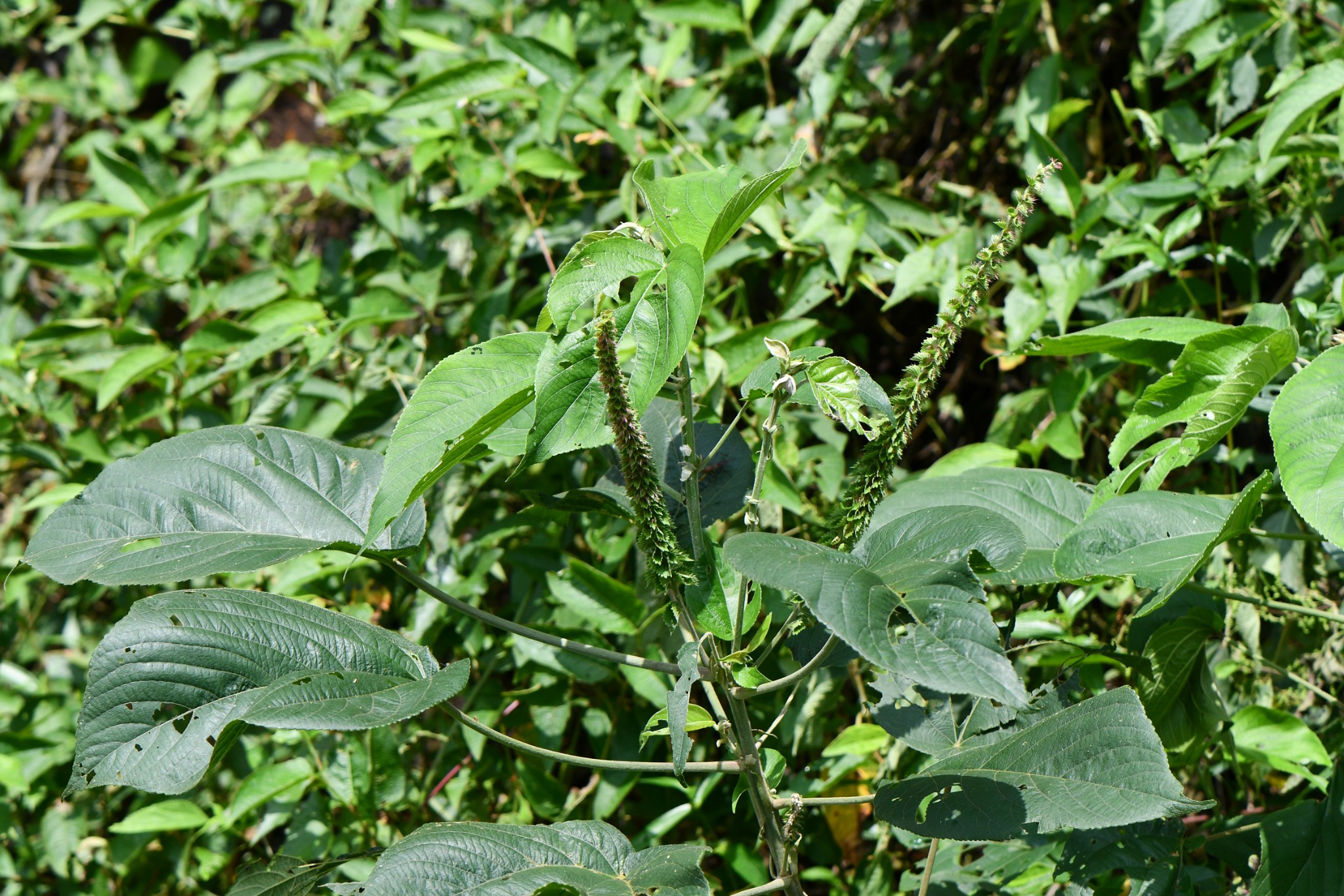 一年生草本植物,植株高可達80公分,雌雄同株,單性花,莖部上具有毛。單互生,菱形卵狀,紙質,長1.5-3.8公分,寬1.5-2.8公分,紙質,葉基楔形,葉柄長,約4公分。穗狀花序,腋生,長2-4公分,子房3心皮。蒴果被苞片包被,3裂,徑1.5-2公釐,被短柔毛。