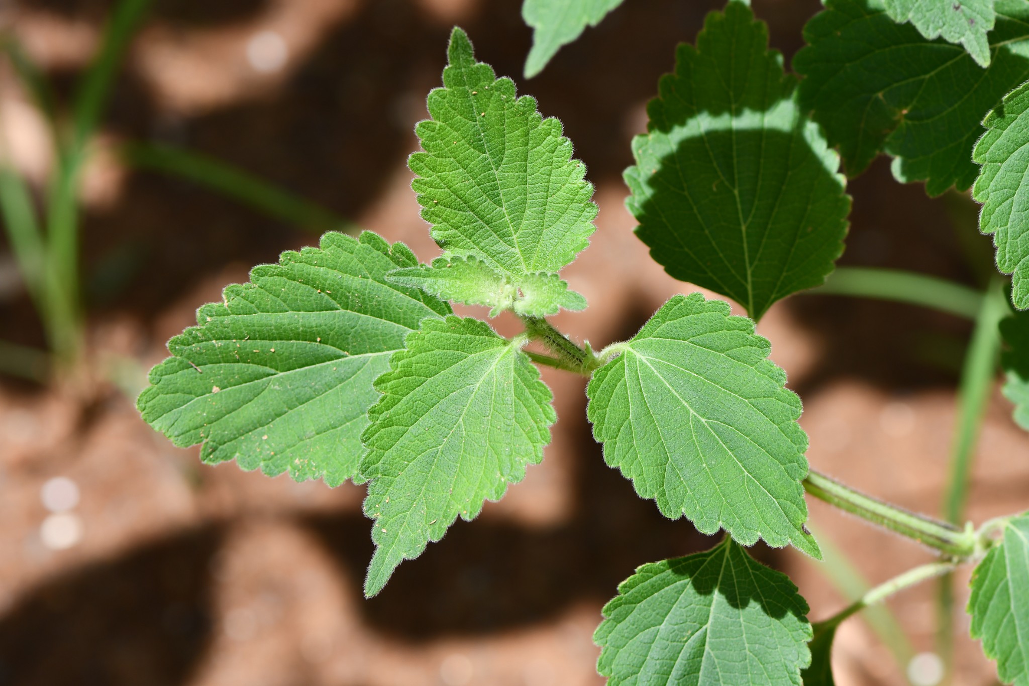 一年生草本,株高50-200公分,全株被毛,分枝多,莖方形。單葉對生,具柄,葉卵形至闊卵形,長4-10公分,寬2-5公分,先端尖,葉基近圓形,粗鋸齒緣,葉薄紙質。輪繖花序,花萼鐘形,5裂,花冠粉紅色或淡紫色,先端唇形,5裂,雄蕊4枚,2強,雌蕊1枚,柱頭2裂。小堅果4粒,圓形,黑褐色。花期8-10月。果期11-1月。