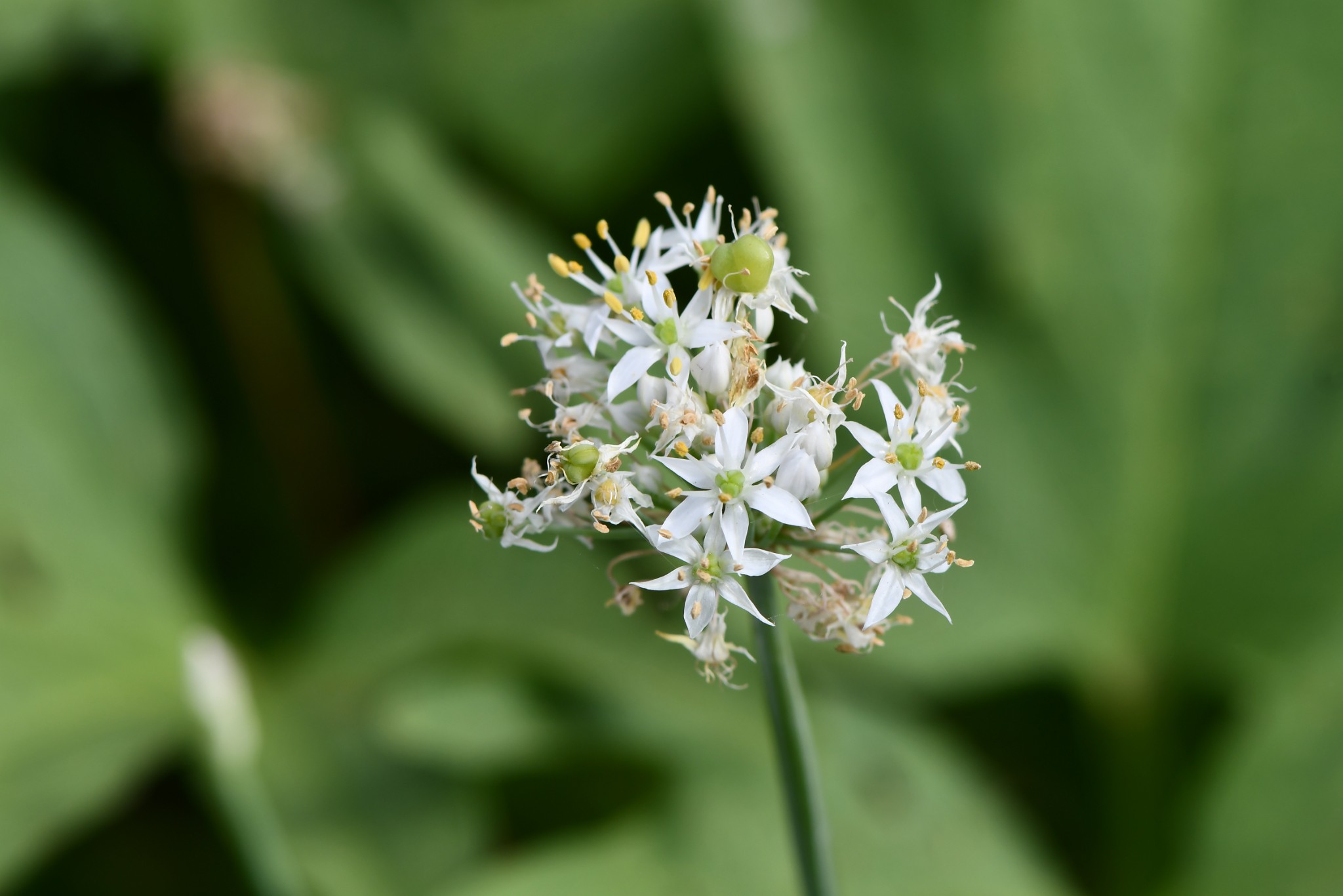 二至多年生草本,植株高20-40公分,根莖橫臥,鬚根多數,具小鱗莖,卵形圓柱狀,地上部莖白色。葉基生,寬線形,扁平細長,長10-30公分,寬1.5-1.8公釐,先端尖,全緣,光滑無毛。繖形花序頂生,花梗三稜形,長30-50公分,總苞片膜質,花被片6枚,白色,雄蕊6枚,雌蕊1枚,子房上位,三稜形,3室。蒴果長0.4-0.5公分。種子扁平,黑色,半卵狀圓形。花果期7-11月。