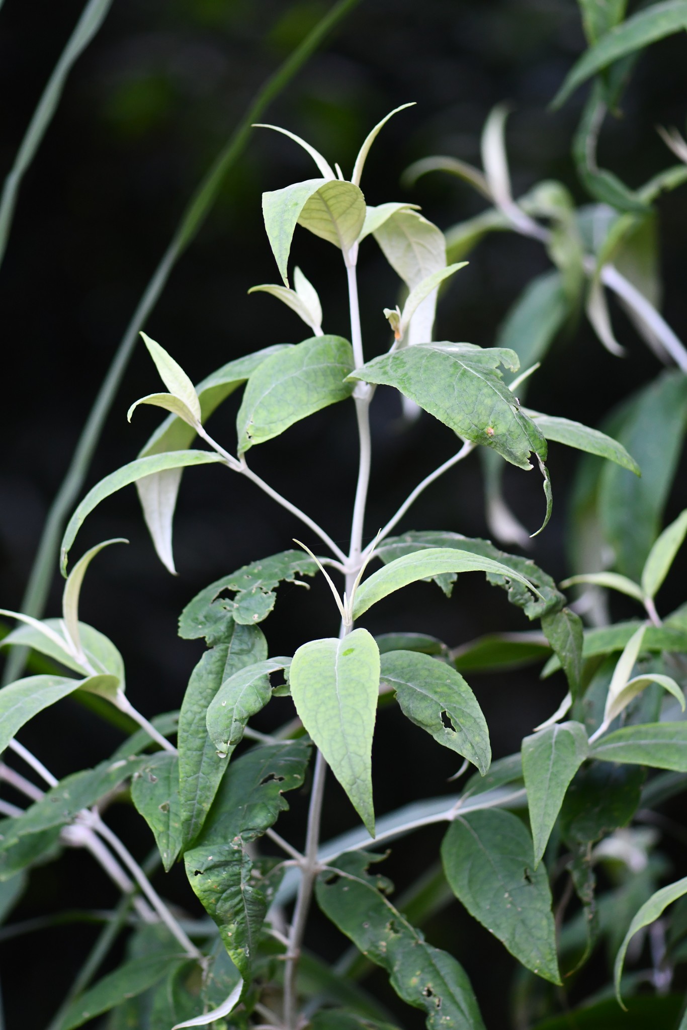 常綠灌木,高1-3公尺。單葉對生,具柄,披針形,長6-13公分,寬1-3公分,先端漸尖,基部楔形,全緣偶有細鋸齒緣,被毛,葉背灰白色,葉脈於葉背隆起。圓錐花序,花多數,花冠筒狀,白色至淡紫色,雄蕊4枚。卵形蒴果,徑0.4公分,花萼宿存,成熟時3裂。花果期夏、秋兩季。