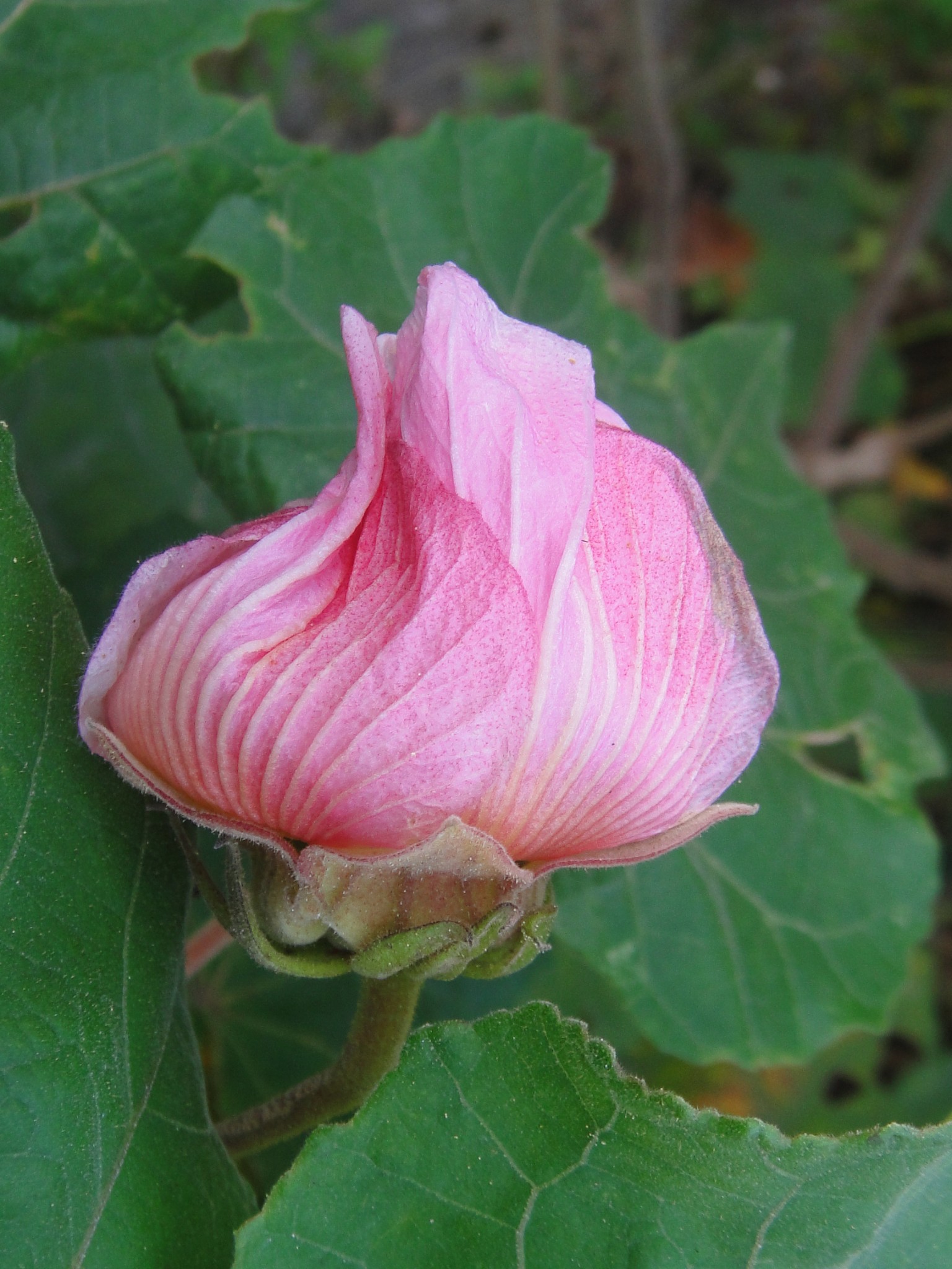 落葉性灌木至小喬木,幼枝被星狀毛。單葉互生,葉柄長,約5-25公分,葉廣卵形或心臟形,掌狀3-7裂,裂片三角形,葉長5-22公分,寬6-23公分,先端尖,葉基心形,齒狀波緣。花1-多朵簇生於葉腋,通常著生在枝端,花萼5裂,2輪,花瓣5枚,大型,粉紅色至深紅色,單體雄蕊多數,子房5室,柱頭5裂。蒴果球形。花果期9-11月。