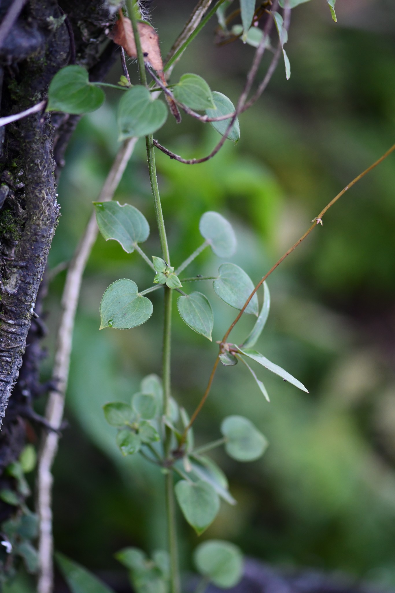多年生攀緣草本,根細長,圓柱形,多數叢生,外皮紅褐色,折斷面紅色或淡紅色。莖四稜形,中空,稜上生倒刺。葉通常4片輪生,有長柄,葉卵狀心形或三角狀卵形,長2-6公分,寬1-4公分,先端急尖,葉基心形,全緣,基出脈5條,葉正面粗糙,葉背面中肋被倒刺,葉柄具倒刺。圓錐花序聚繖狀排列,腋生或頂生,花小型,花萼平截狀,花冠淡黃白色,5裂,雄蕊5枚,著生於花冠管喉內,子房下位,2室,花柱2歧。漿果肉質,成熟時紅黑色。花期夏季。