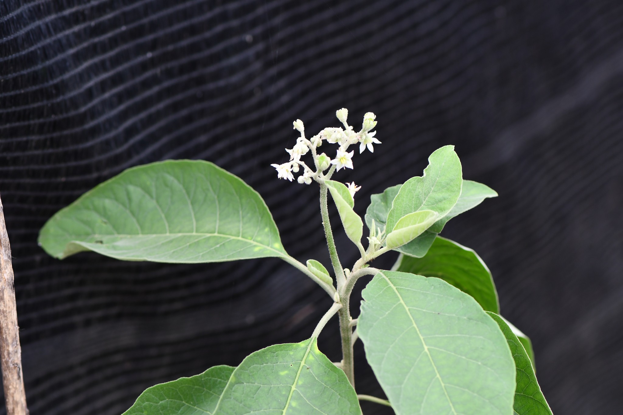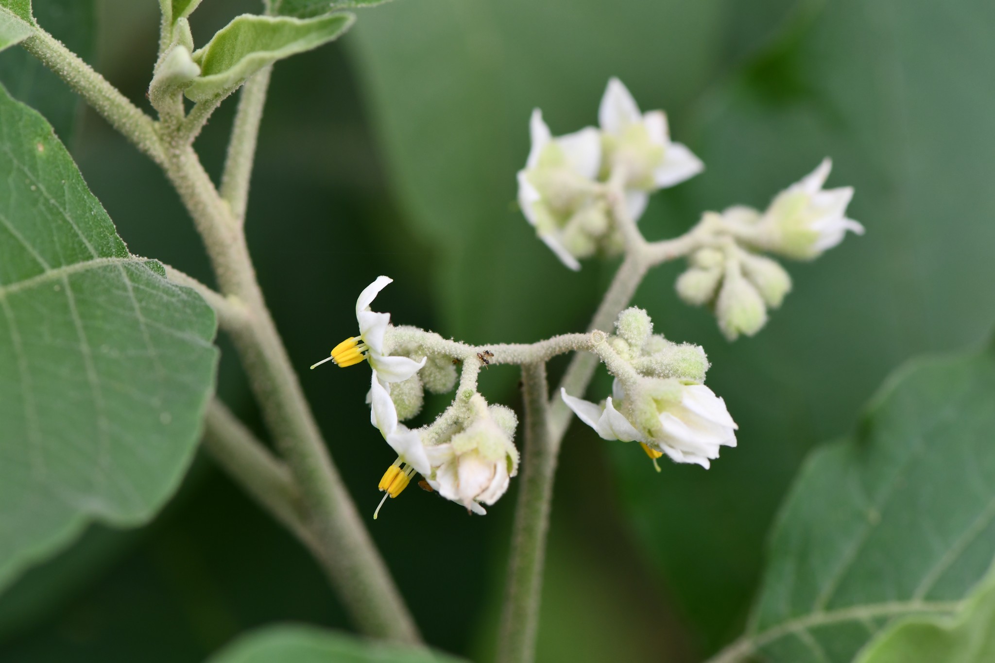 常綠灌木,高可達1.5公尺,直立,全株被黃褐色星狀毛。單葉互生,葉厚質,具柄,寬卵形、短圓狀卵形或橢圓狀卵形,長12-22公分,寬4-14公分,葉正面綠色,葉背灰白色,兩面皆密被白色星狀柔毛。聚繖花序頂生,花白色,花梗被毛,花萼灰綠色,長2-6公釐,花冠裂片5,雄蕊5枚。漿果球形,橙黃色。
