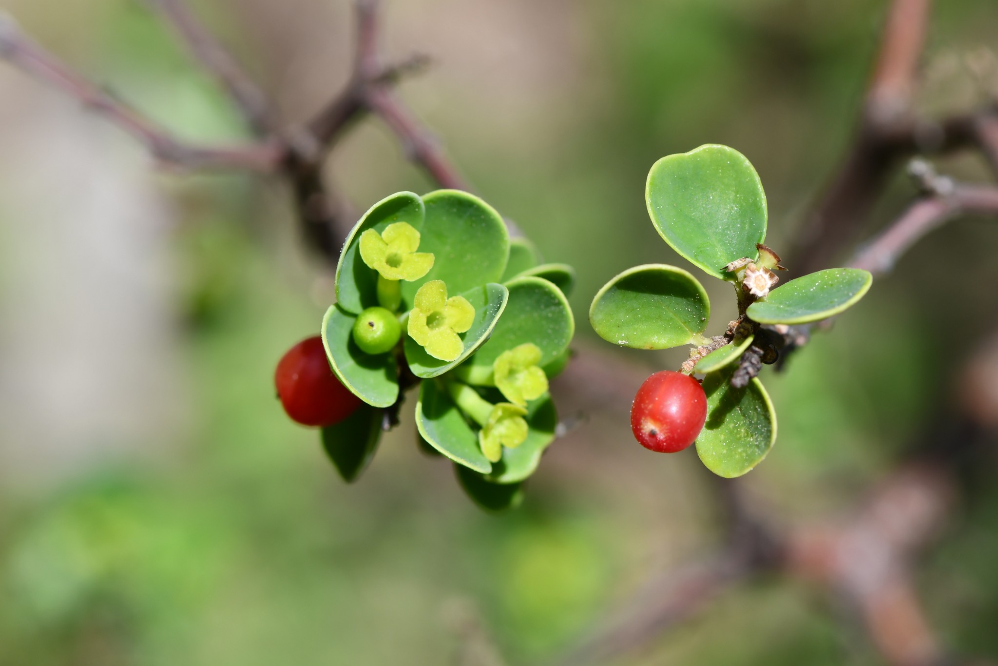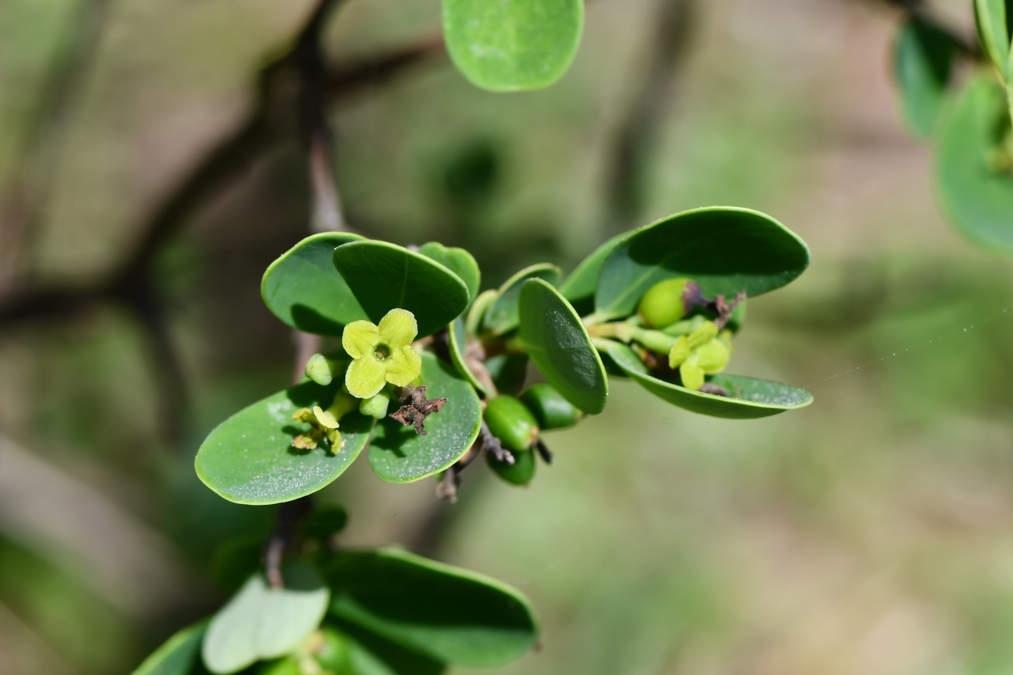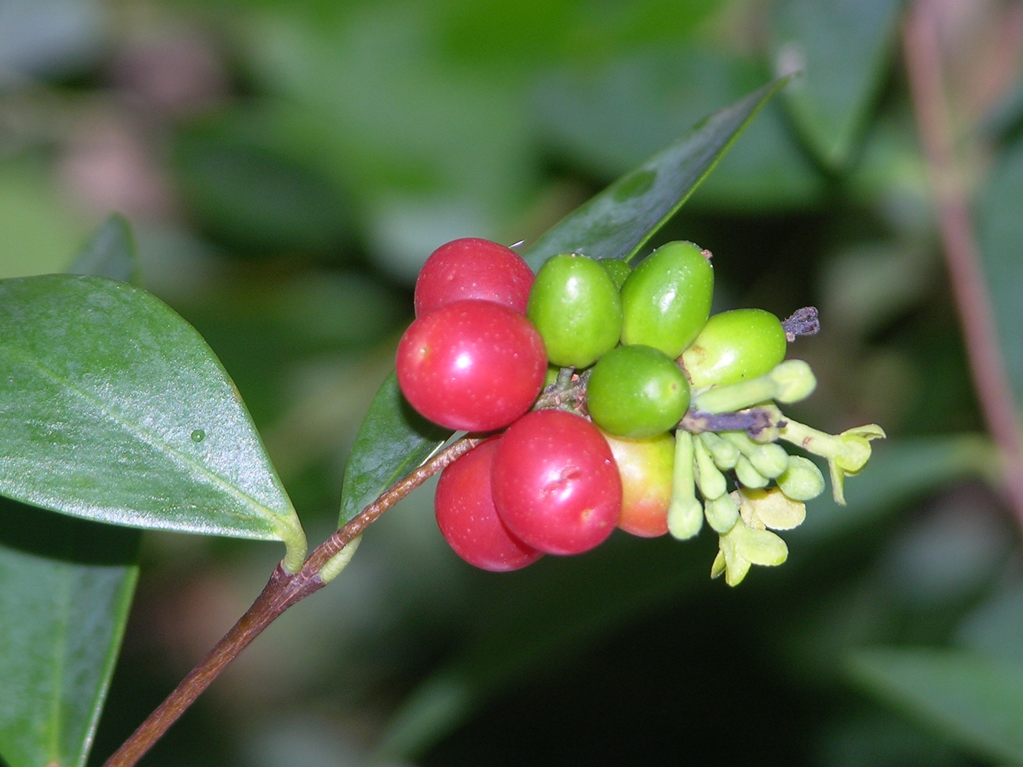 半常綠小灌木,株高30-100公分,莖直立,分枝多,枝條紅褐色。葉對生,具短柄,葉片長橢圓形,長2-5公分,寬0.8-1.5公分,先端鈍形或尖形,葉基楔形或鈍形,全緣,兩面光滑無毛,側脈5-10對。花簇生枝端,具短梗,花萼管狀,花冠黃綠色,雄蕊8枚,子房下位,橢圓形,花柱短。核果卵形,熟紅至紫黑色。花果期夏、秋間。