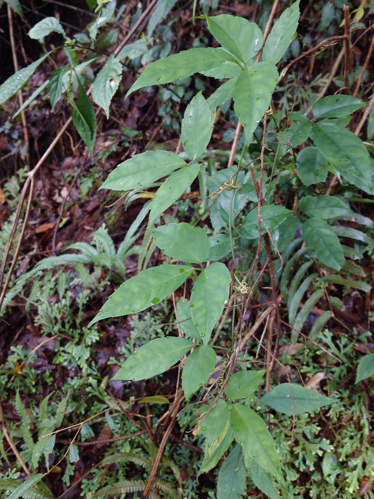 多年生藤本,幼枝圓柱形,卷鬚不分歧。三出複葉互生,具長柄,小葉具短柄,葉披針形,長橢圓形或卵狀長橢圓形,長3-6公分, 寬1-2公分,先端尖形,葉基鈍形,全緣或疏淺鋸齒緣,具光澤,革質。雌雄異株,聚繖花序腋生,花萼小型,花瓣4枚,綠白色,雄花雄蕊4枚,雌花子房4室,柱頭4裂。果實球形。種子2-4粒。花期夏季。果期秋季。
