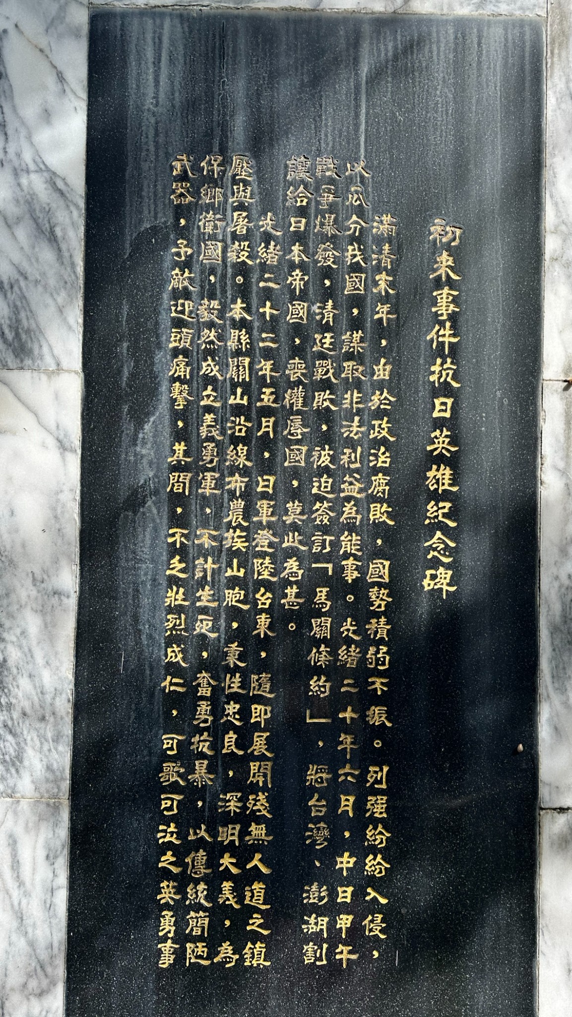 【圖2】初來事件抗日英雄紀念碑碑文內容。(謝博剛拍攝,2025年)
