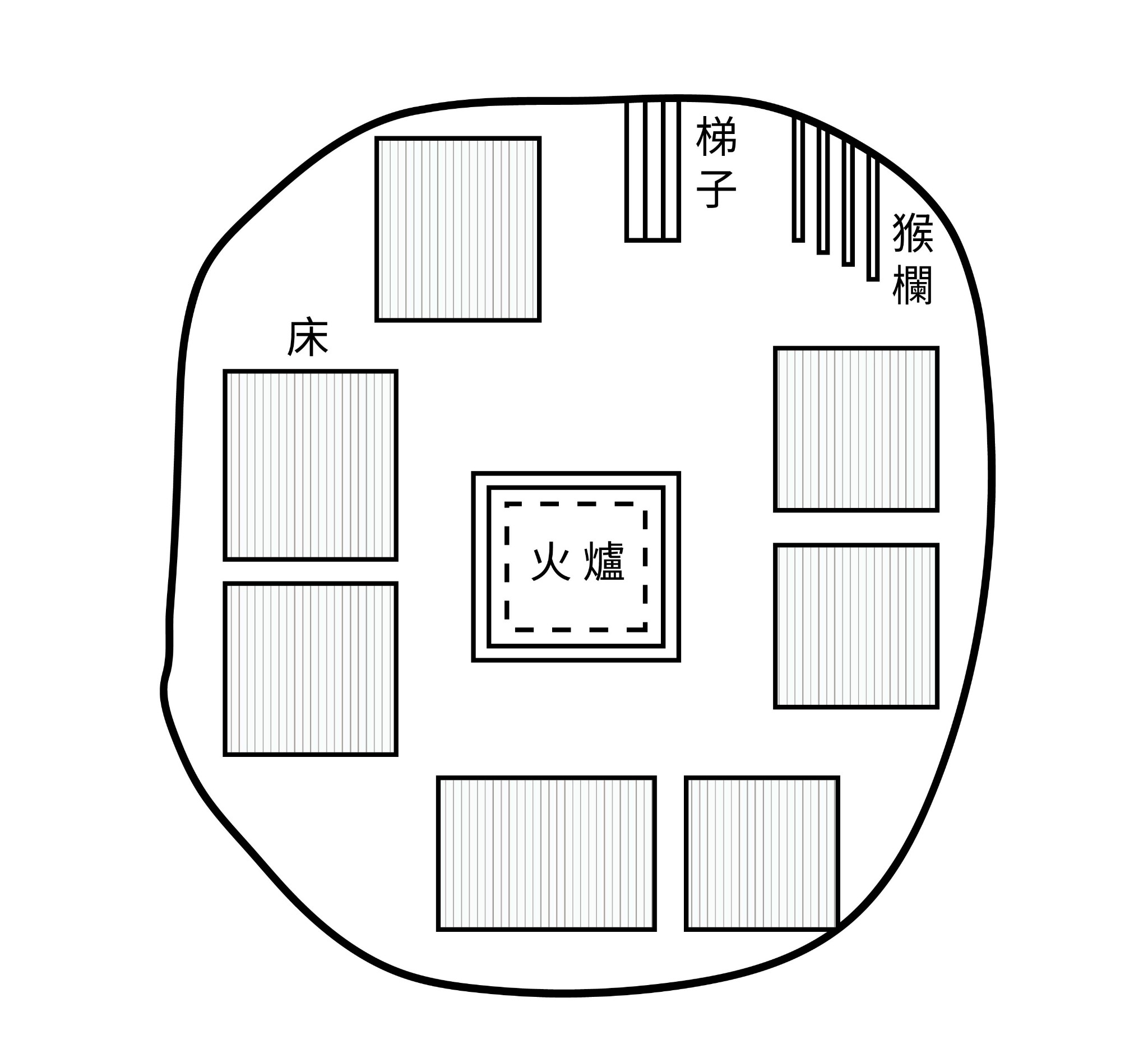 【圖7】少年集會所平面圖。(編輯部依據《蕃族調查報告書第一冊 阿美族南勢蕃 阿美族馬蘭社 卑南族卑南社》繪製)