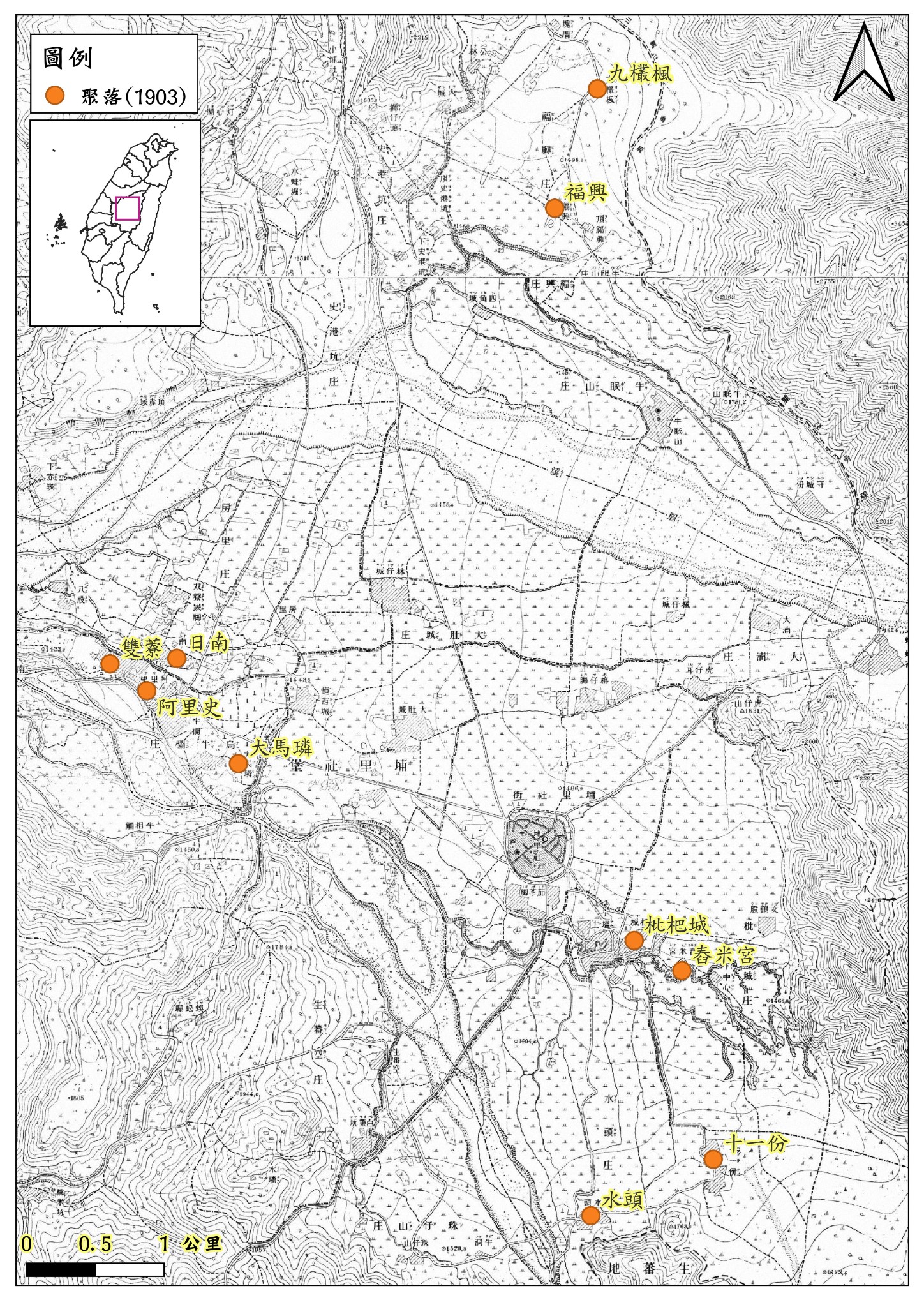 【圖1】北投社於埔里盆地的聚落。