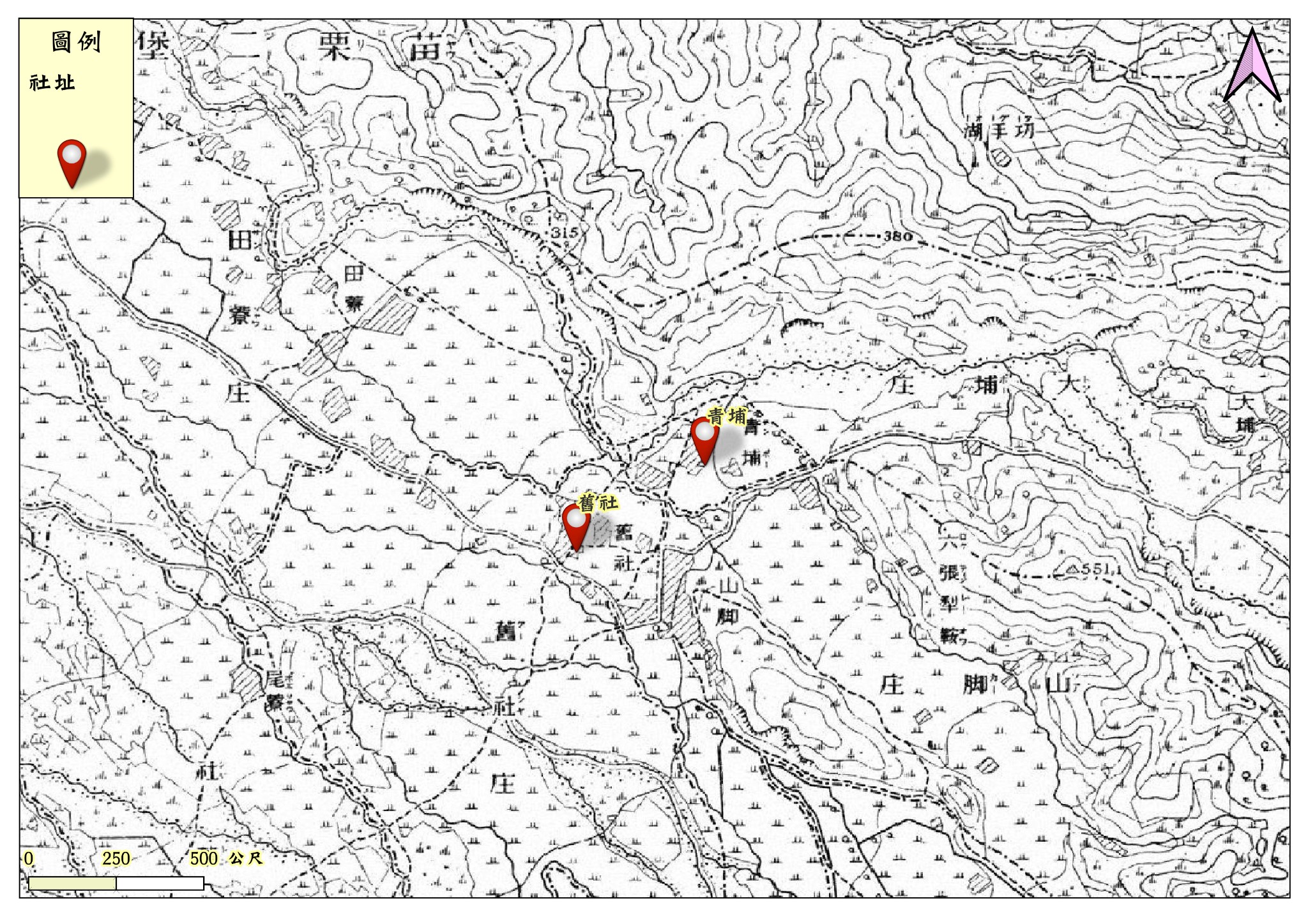 日北社舊社址位於苗栗二堡舊社庄(今苗栗縣苑裡鎮舊社里東側,約為致民國中與山腳國小一帶),而新社則是在苗栗二堡大埔庄土名青埔一帶(今苗栗縣苑裡鎮山腳里)。