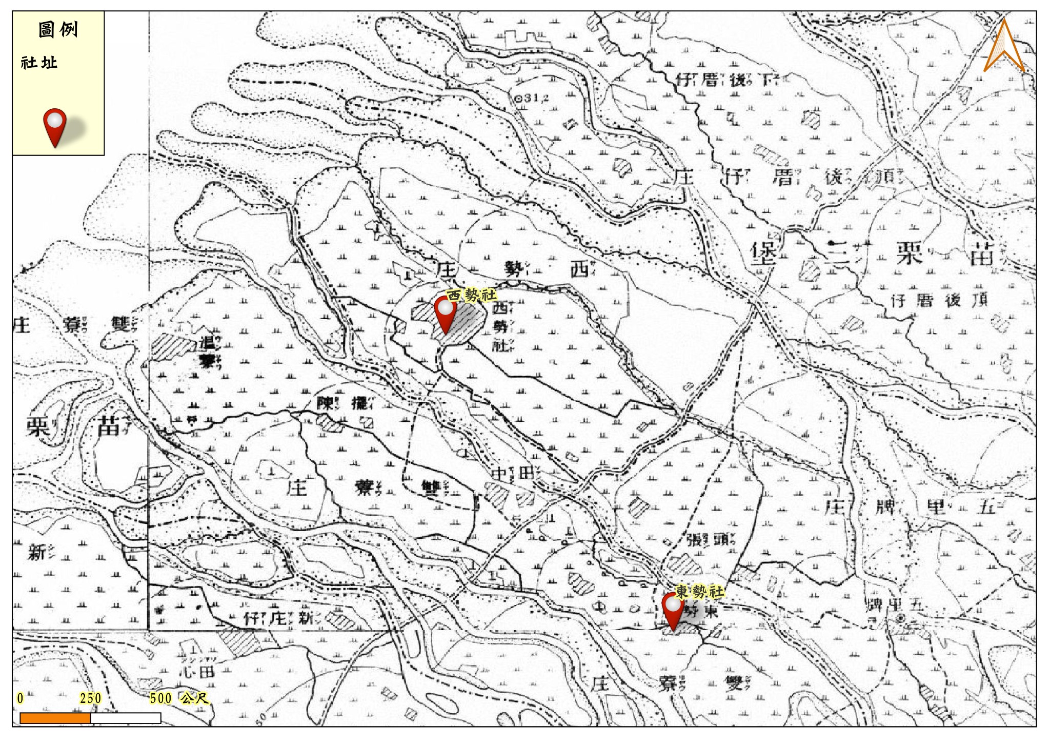 到了清代,有關雙藔社社址,除了輿圖上的記載之外,另可從1722年(康熙61年)閩浙總督覺羅滿保的奏折中,得知當時雙藔社的社址位置及人口數:「竊臺灣熟番村落散居於山外平地,耕田捕鹿,納賦甚是守法……。三月據臺灣總兵、道員等呈報,諸羅縣屬方里、雙藔二村熟番二百餘人,於臺灣府以北四百里外居住」。可知雙藔社在康熙末年時仍有超過200人的村社規模,社址則分布於台灣府以北400里外。此外,1814年(嘉慶19年)由雙藔社番打那曰所立〈找賣契字〉中,亦有記載其承祖父所遺下之厝地,坐落於土名海豐庄(即五里牌庄,今台中市大甲區龍泉里一帶)。至於相關契字文書中,雙藔社則又被書寫為東勢社、西勢社、擺陳社(如光緒3年〈雙藔擺陳社番朱亮等立添典田契字〉)。其中,洪麗完認為西勢社的社址應位於今台中市大甲區建興里;東勢社則坐落於今台中市大甲區龍泉里。不過,若根據1895年(光緒21年),由林萬本、萬瑞、萬戶、阿九、阿喜兄弟等所立契字所載,該兄弟有承先父明買過雙藔西勢社番潘永生、潘天文水田六段,首段土地坐落於雙藔東勢社東畔(即今日建興里東側一帶)。至於雙藔西勢社的社址,則可根據該社於日本時代初期(約1898-1905年)苗栗三堡西勢庄的《土地申告書》中所申告之祖遺建地來確認,即位於《臺灣堡圖》所標示的西勢庄土名西勢社的聚落內;若進一步套疊今日地圖,即可確知西勢社社址乃位於今日西濱公路西側之台中市大甲區建興里如意路兩側一帶。