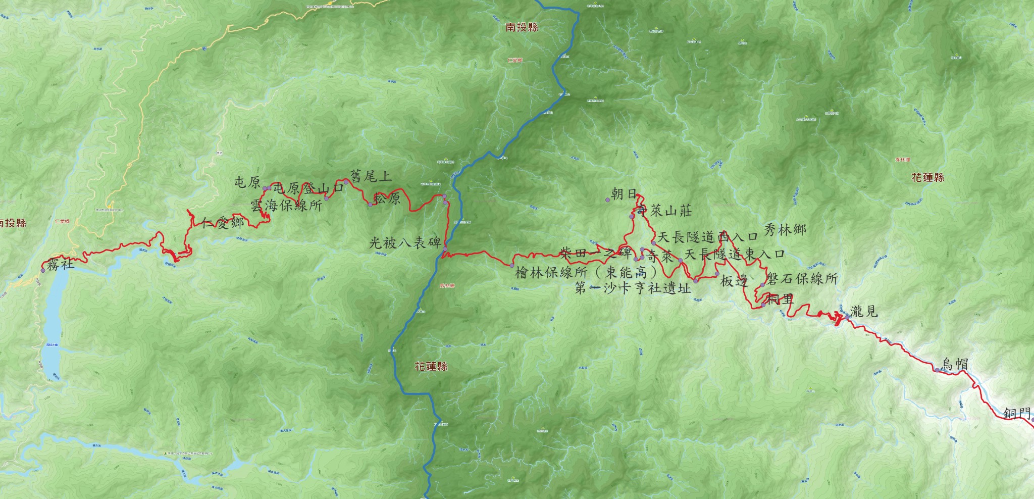 「能高越嶺道路」是中部能高郡(今埔里)通往東部最重要的道路之一,道路穿越賽德克族與太魯閣族的傳統領域,全長約為77公里。