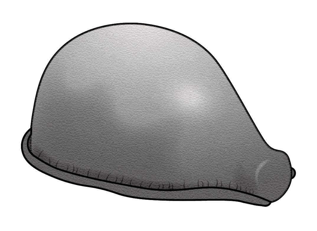 2.形如消防帽的皮帽:皮帽後端多一片遮蓋後腦的皮革,打獵或參加酒宴時穿戴。