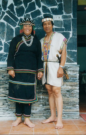 男子盛裝時頭戴皮帽或棉布頭巾,在過去,若男子頭部繫綁紅色頭巾,表示他具有成功獵首的功績。頸部佩戴由琉璃珠或貝珠串接的頸飾與各種項飾,上身穿著對襟無領無袖長上衣與胸兜(kulin),下身穿著前遮片或摺裙(參見順益台灣原住民博物館男子短裙M009200)。女子盛裝時,頭部繫綁頭巾,佩戴各種項飾,上身穿著漢式右襟圓領長袖上衣,下半身穿著單片式長裙與護腳布(如圖5)。