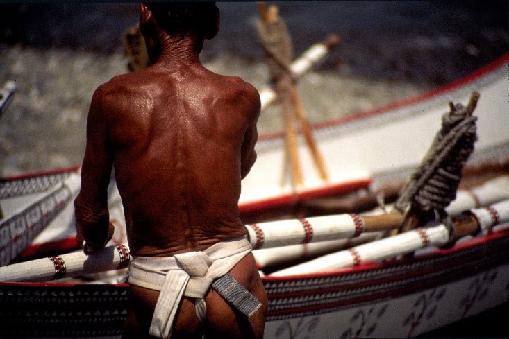 【圖16】穿著傳統kekjit(丁字帶)的雅美族男子影像。(楊政賢拍攝,2012年)