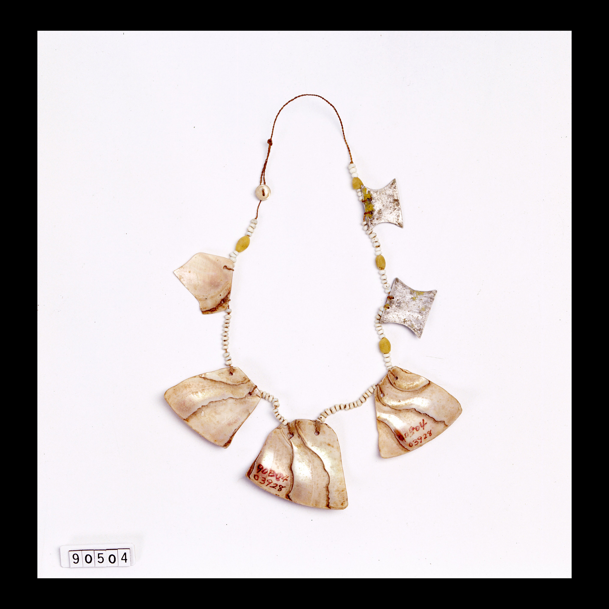 【圖10】植物種子與斧形銀片的珠串胸飾。(資料來源:中研院民族所博物典藏品90124(CC BY-NC-ND 3.0 TW)@開放博物館)