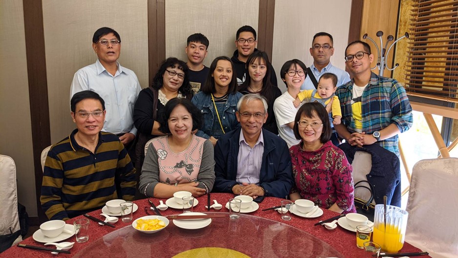 【圖1】全家人合影(和大妹、二妹全家人,馬彼得為前列右二)。(2020年拍攝,馬彼得提供)