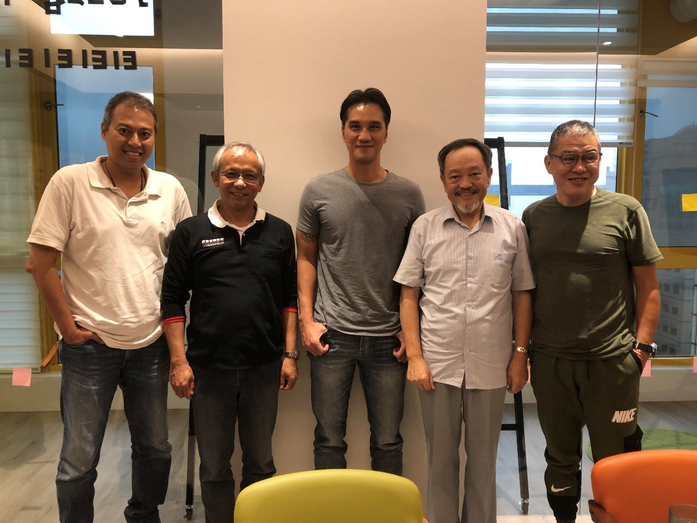 【圖7】教育事蹟被拍成電影《先聽歌再唱》,與導演、製作人及演員合影(馬彼得為左二)。(2019年拍攝,馬彼得提供)