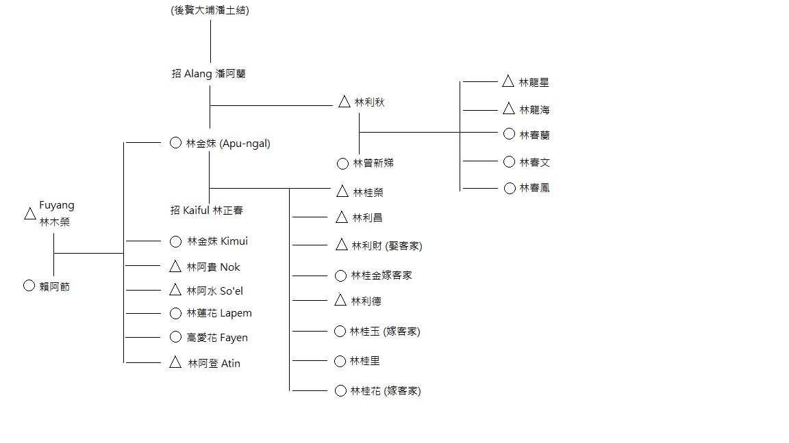 系譜: 林木榮/金 妹/林利秋 /林春鳳系譜
