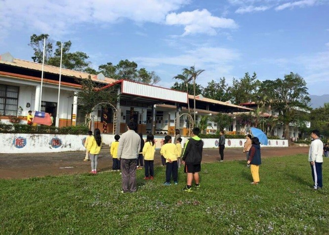【圖11】師生於司令台升旗。(安朔國小提供)