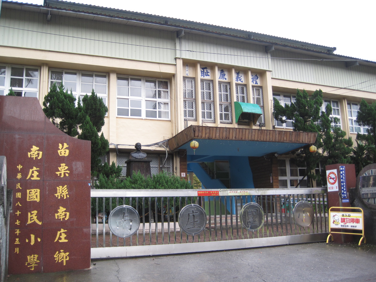 「南庄國小」的前身為1898年(明治31年)12月創校的「南庄公學校」,隔年2月開校。1944年(昭和19年)本校設高等科、青年學校。1941年(昭和16年)實施國民學校制度,改名為「南庄國民學校」。戰後1945年(民國34年)設新竹縣,改稱「新竹縣南庄鄉南庄國民學校」。1950年(民國39年)南庄鄉改隸新成立的苗栗縣,本校隨改稱「苗栗縣南庄鄉南庄國民學校」。1968年(民國57年)實施九年國民教育,改名為「南庄國民小學」。本校為原住民重點學校。在2018年(107學年度),原住民學生53人,占總學生數36%,學生約六成為泰雅族,四成為賽夏族。
