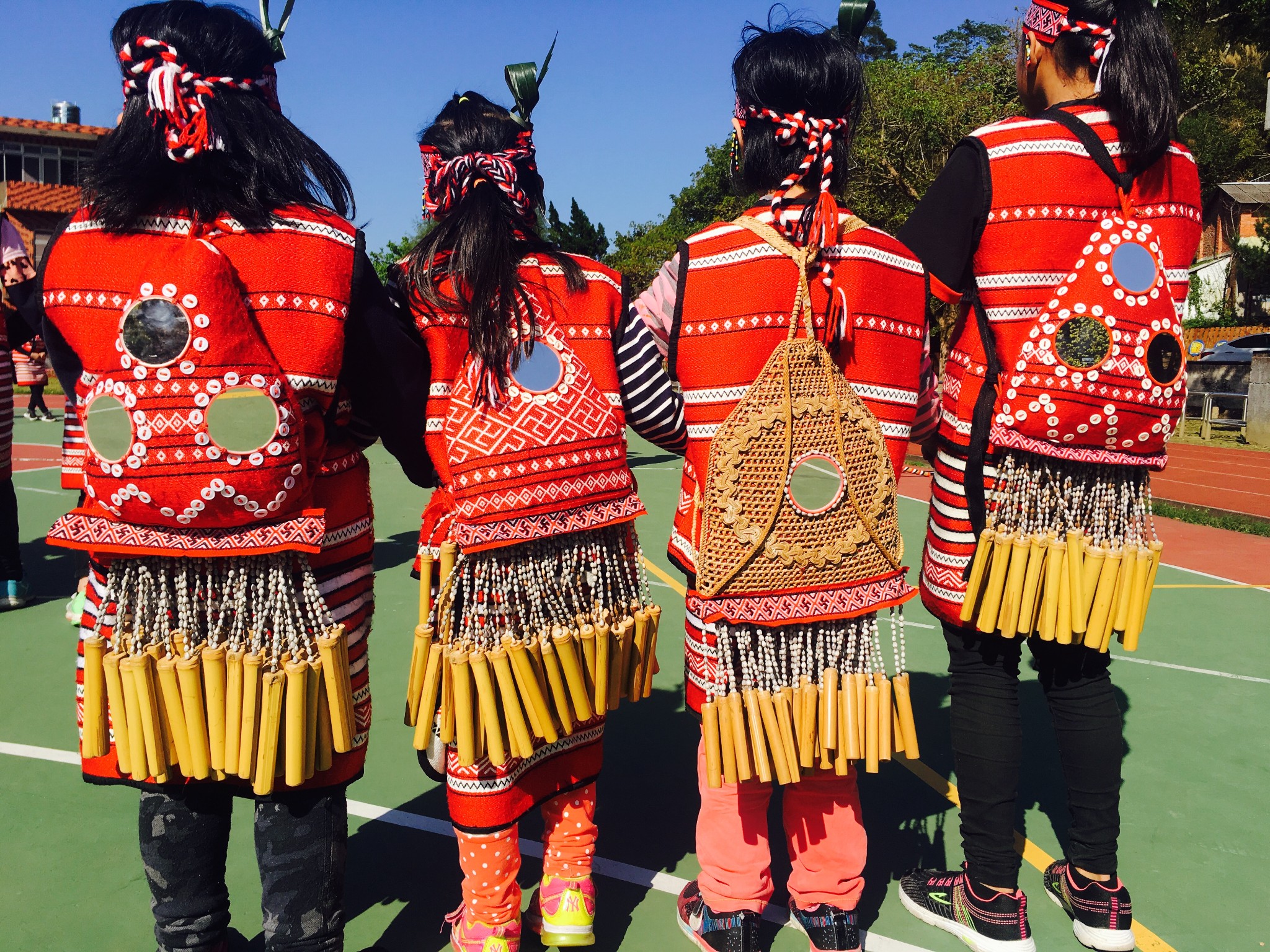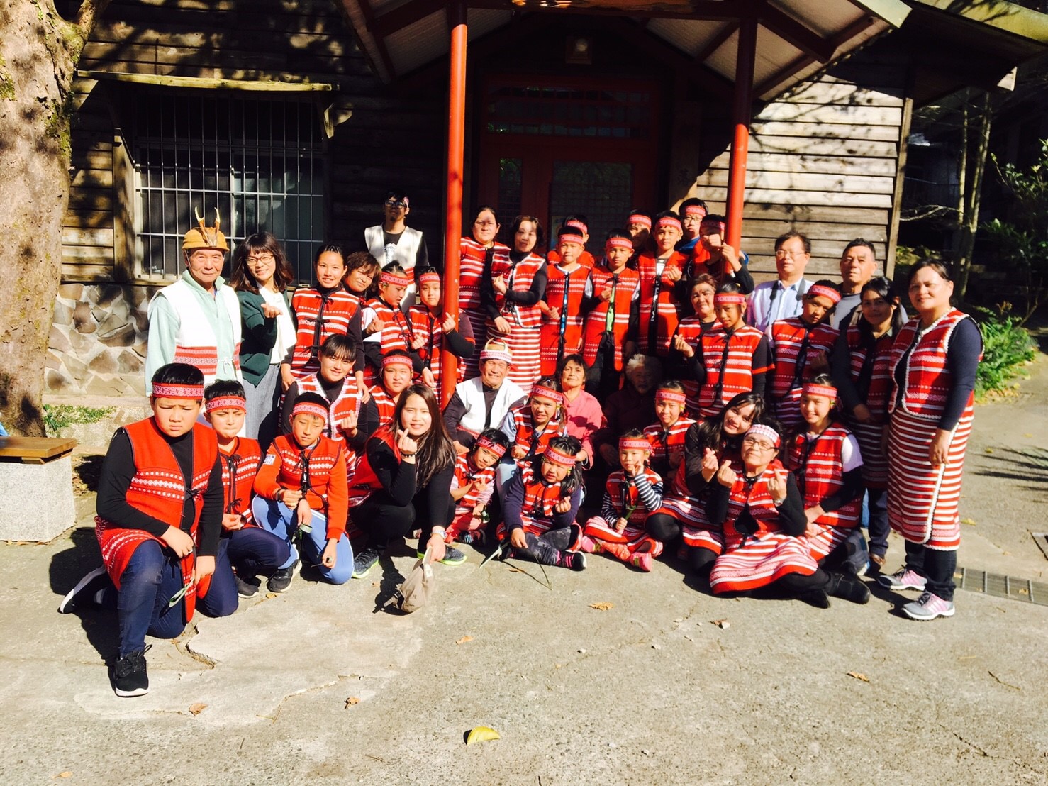 【圖1】全體師生身著賽夏族傳統服裝。