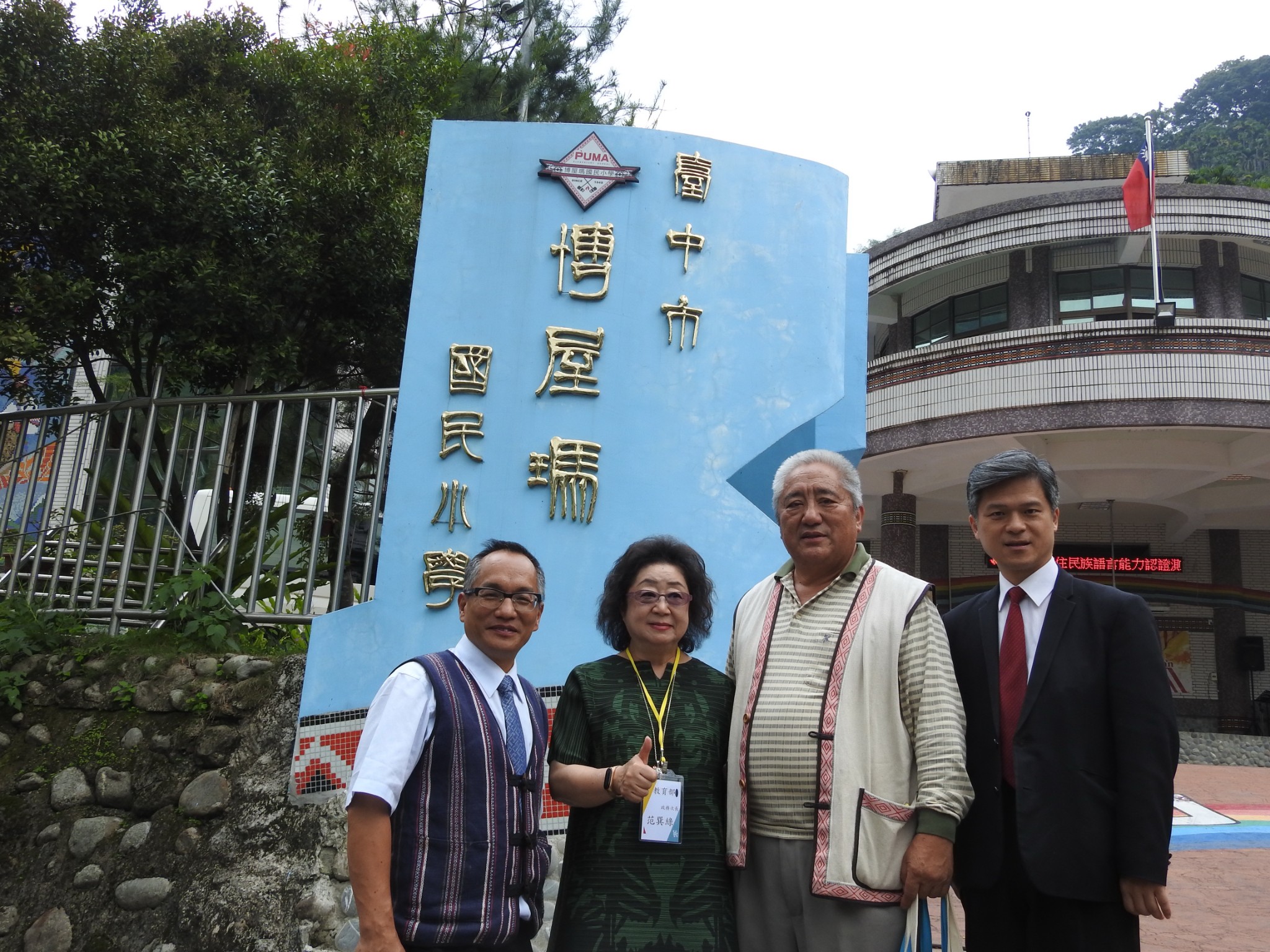 【圖1】左起:比令亞布校長、教育部次長范巽綠、監察委員瓦歷斯貝林、教育部署長彭富源(2019年拍攝)。