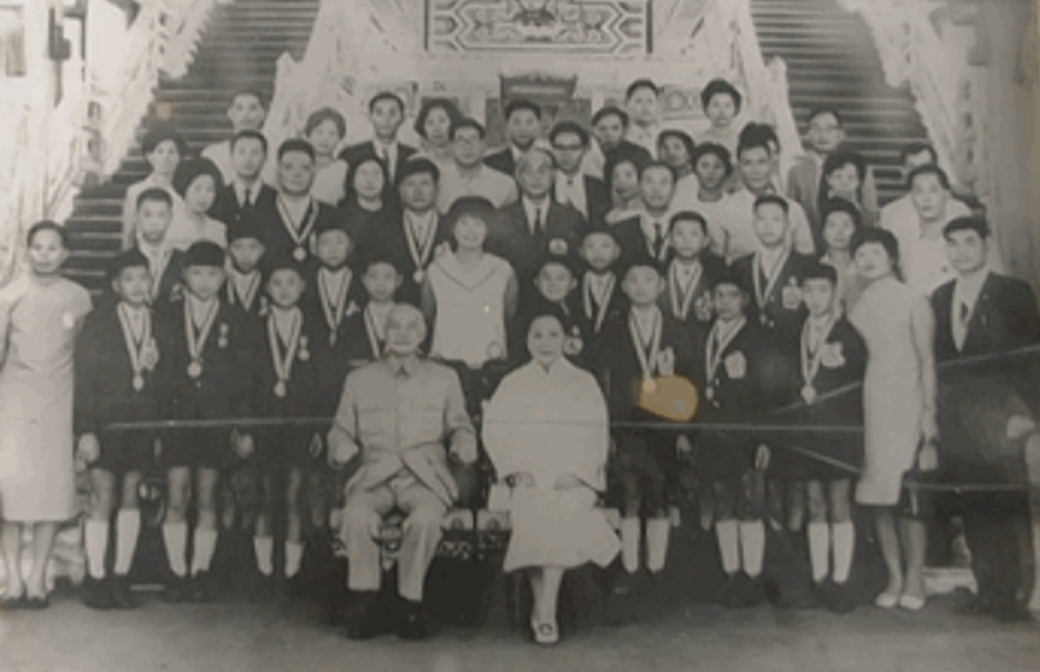 【圖3】郭源治校友、得獎同學與蔣中正總統伉儷合影。(吳冠霖提供)