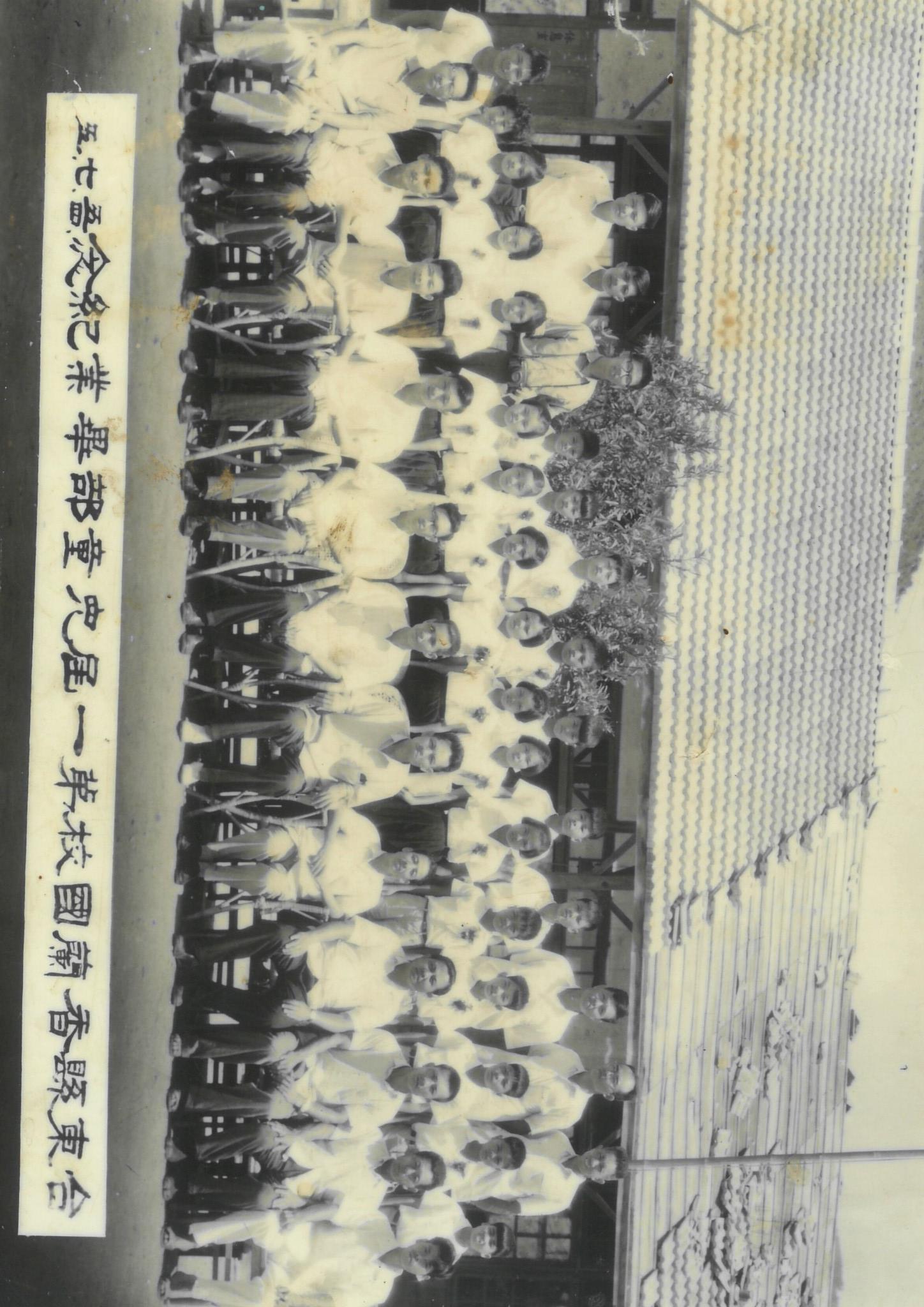 【圖1】香蘭國校第一屆畢業照,後方校舍為磚瓦房。(香蘭國小提供,1965年)