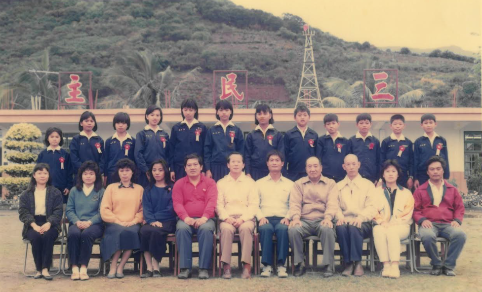 【圖2】香蘭國小第二十三屆畢業照,後方校舍為一層鋼筋水泥房。(香蘭國小提供,1987年)