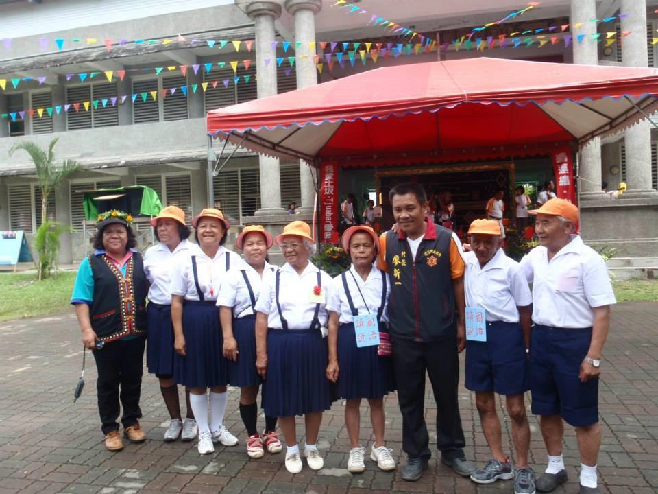 【圖6】2013年(民國102年)土坂村長廖新一與參與「百年校慶模範老學生」活動的耆老合影。